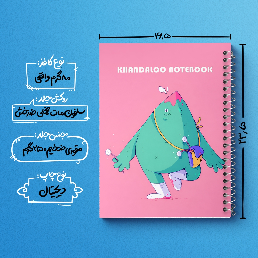 برند خندالو در زمینه تولید انواع دفاتر فانتزی و تحصیلی فعالیت میکند که به دلیل جذابیت ظاهری و طرح های متنوع طرفداران زیادی دارد. دفتر مشق خندالو محصولی مناسب برای استفاده به عنوان دفتر ریاضی، فیزیک، شیمی و جزوات دروس دانشجویان رشته های مختلف است.