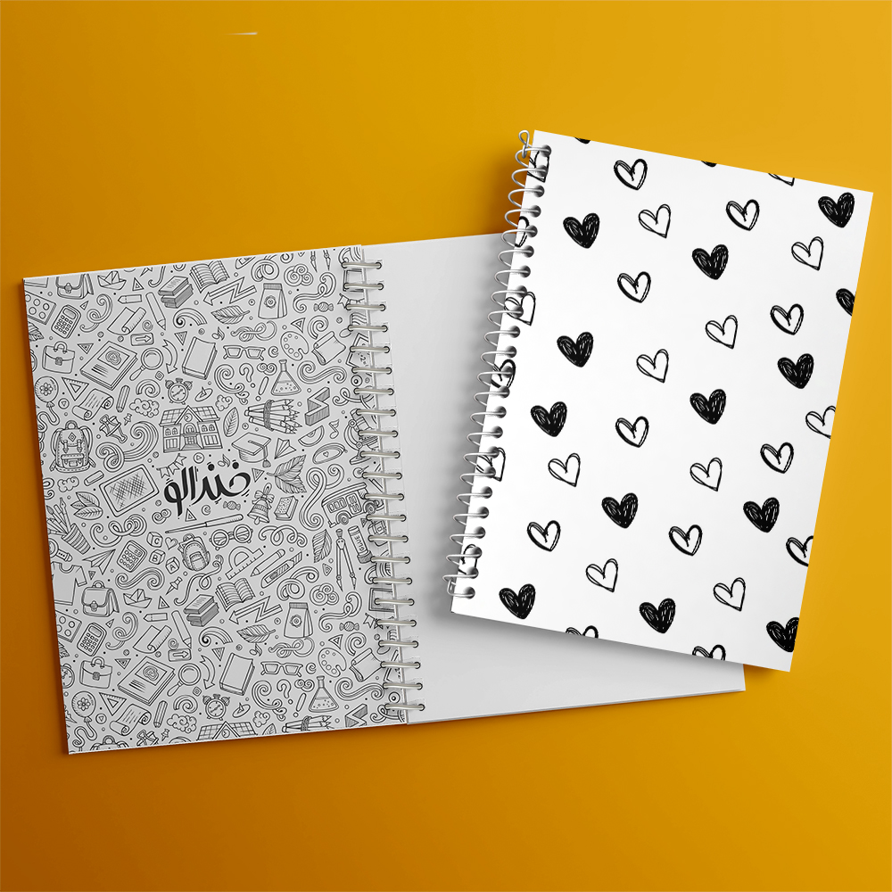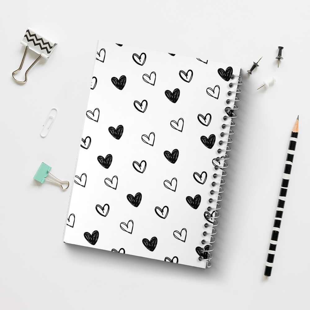 دفتر پترن قلب سیاه و سفید