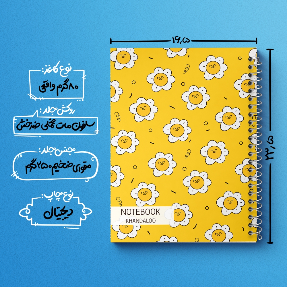 برند خندالو در زمینه تولید انواع دفاتر فانتزی و تحصیلی فعالیت میکند که به دلیل جذابیت ظاهری و طرح های متنوع طرفداران زیادی دارد. دفتر مشق خندالو محصولی مناسب برای استفاده به عنوان دفتر ریاضی، فیزیک، شیمی و جزوات دروس دانشجویان رشته های مختلف است.
