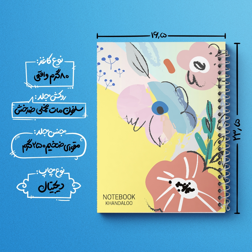 برند خندالو در زمینه تولید انواع دفاتر فانتزی و تحصیلی فعالیت میکند که به دلیل جذابیت ظاهری و طرح های متنوع طرفداران زیادی دارد. دفتر مشق خندالو محصولی مناسب برای استفاده به عنوان دفتر ریاضی، فیزیک، شیمی و جزوات دروس دانشجویان رشته های مختلف است. در تولید این دفتر از نوع صحافی فنر مارپیچ استفاده شده که در این نوع صحافی برگهها به راحتی چرخیده و یا بیرون آورده می شوند. دفتر های خندالو دارای جلد انعطاف پذیر از جنس مقوای گلاسه 250 گرم با روکش سلفون مات مخملی است که به شما امکان میدهد از دفتر خود بدون اینکه نگرانی از شکستن یا خراب شدن جلد را داشته باشید استفاده کنید و همچنین در این دفاتر از کاغذ 80 گرم با کیفیت استفاده شده که باعث میشود هنگام نوشتن به خوبی جوهر قلم بر روی صفحه نشسته و از خط خوردگیها جلوگیری کند. این دفتر مشق با جنس و دوام مناسب، برگه های کاملاً سفید و خطوط طوسی دقیق را داراست که انسان را به نوشتن منظم و زیبا ترغیب میکند. طراحی کاملاً مناسب این دفاتر، به همراه کیفیت بالا، از آن یک محصول مورد علاقه و قابل اعتماد برای همه مقاطع تحصیلی میسازد. دفتر مشق خندالو انتخابی هوشمندانه و مناسب برای افرادی است که به دنبال دفتری با کیفیت و کاربرد عالی هستند. این دفتر، همراه خوبی برای شما در تمام مراحل تحصیل و کار خواهد بود و تجربهای لذتبخش از نوشتن و آموختن را به شما هدیه میدهد.