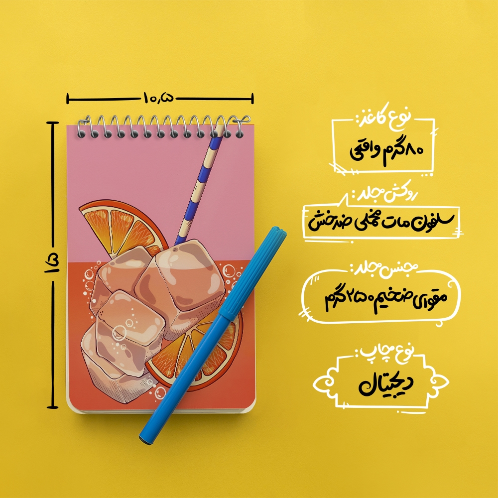 برند خندالو در زمینه تولید انواع دفاتر فانتزی و تحصیلی فعالیت میکند که به دلیل جذابیت ظاهری و طرح های متنوع طرفداران زیادی دارد. دفتر یادداشت خندالو طرح آب پرتقال محصولی مناسب برای همه عاشقان لوازم التحریر است و همچنین همه کسانی که بنا به موقعیت تحصیل یا شغلشان با دفتر و نوشت افزار زیاد سر و کار دارند. در تولید دفتر یادداشت خندالو طرح آب پرتقال از نوع صحافی فنر مارپیچ استفاده شده که در این نوع صحافی برگهها به راحتی چرخیده و یا بیرون آورده می شوند. دفتر های خندالو دارای جلد انعطاف پذیر از جنس مقوای گلاسه 250 گرم با روکش سلفون مات مخملی است که به شما امکان میدهد از دفتر خود بدون اینکه نگرانی از شکستن یا خراب شدن جلد را داشته باشید استفاده کنید و همچنین در این دفاتر از کاغذ 80 گرم با کیفیت استفاده شده که باعث میشود هنگام نوشتن به خوبی جوهر قلم بر روی صفحه نشسته و از خط خوردگیها جلوگیری کند. دفتر یادداشت خندالو با جنس و دوام مناسب، برگه های کاملاً سفید و خطوط طوسی دقیق را داراست که انسان را به نوشتن منظم و زیبا ترغیب میکند. طراحی کاملاً مناسب این دفاتر، به همراه کیفیت بالا، از آن یک محصول مورد علاقه و قابل اعتماد برای همه مقاطع تحصیلی میسازد. دفتر یادداشت خندالو طرح آب پرتقال انتخابی هوشمندانه و مناسب برای افرادی است که به دنبال دفتری با کیفیت و کاربرد عالی هستند. این دفتر، همراه خوبی برای شما در تمام مراحل تحصیل و کار خواهد بود و تجربهای لذتبخش از نوشتن و آموختن را به شما هدیه میدهد.