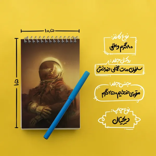 برند خندالو در زمینه تولید انواع دفاتر فانتزی و تحصیلی فعالیت میکند که به دلیل جذابیت ظاهری و طرح های متنوع طرفداران زیادی دارد. دفتر یادداشت خندالو طرح آدم فضایی محصولی مناسب برای همه عاشقان لوازم التحریر است و همچنین همه کسانی که بنا به موقعیت تحصیل یا شغلشان با دفتر و نوشت افزار زیاد سر و کار دارند. در تولید دفتر یادداشت خندالو طرح آدم فضایی از نوع صحافی فنر مارپیچ استفاده شده که در این نوع صحافی برگه‌ها به راحتی چرخیده و یا بیرون آورده می شوند.