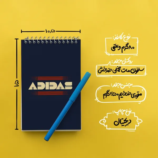 برند خندالو در زمینه تولید انواع دفاتر فانتزی و تحصیلی فعالیت میکند که به دلیل جذابیت ظاهری و طرح های متنوع طرفداران زیادی دارد. دفتر یادداشت خندالو طرح آدیداس (Adidas) محصولی مناسب برای همه عاشقان لوازم التحریر است و همچنین همه کسانی که بنا به موقعیت تحصیل یا شغلشان با دفتر و نوشت افزار زیاد سر و کار دارند. در تولید دفتر یادداشت خندالو طرح آدیداس (Adidas) از نوع صحافی فنر مارپیچ استفاده شده که در این نوع صحافی برگه‌ها به راحتی چرخیده و یا بیرون آورده می شوند.