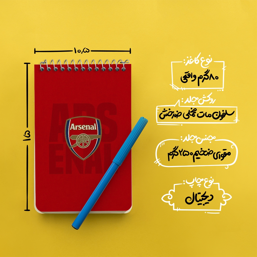 برند خندالو در زمینه تولید انواع دفاتر فانتزی و تحصیلی فعالیت میکند که به دلیل جذابیت ظاهری و طرح های متنوع طرفداران زیادی دارد. دفتر یادداشت خندالو طرح آرسنال (Arsenal) محصولی مناسب برای همه عاشقان لوازم التحریر است و همچنین همه کسانی که بنا به موقعیت تحصیل یا شغلشان با دفتر و نوشت افزار زیاد سر و کار دارند. در تولید دفتر یادداشت خندالو طرح آرسنال (Arsenal) از نوع صحافی فنر مارپیچ استفاده شده که در این نوع صحافی برگه‌ها به راحتی چرخیده و یا بیرون آورده می شوند.