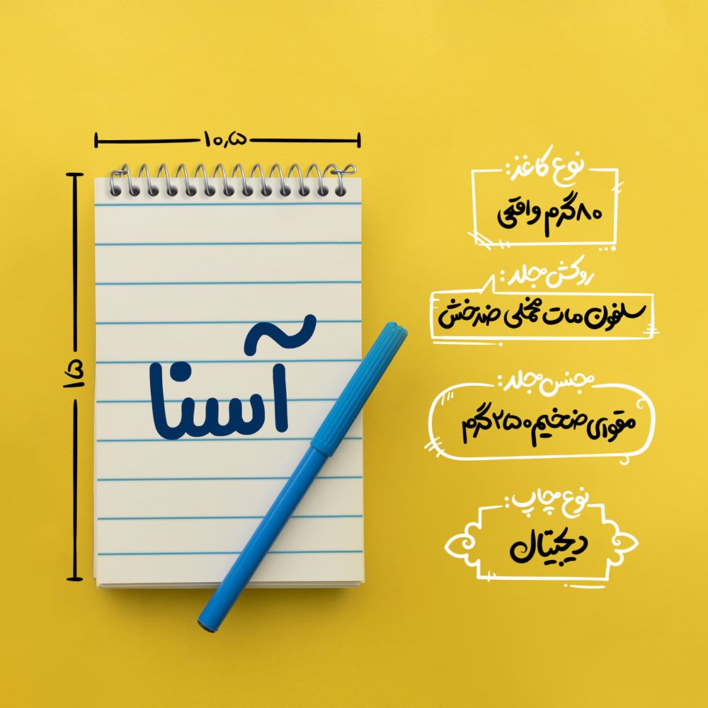 برند خندالو در زمینه تولید انواع دفاتر فانتزی و تحصیلی فعالیت میکند که به دلیل جذابیت ظاهری و طرح های متنوع طرفداران زیادی دارد. دفتر یادداشت خندالو طرح آسنا محصولی مناسب برای همه عاشقان لوازم التحریر است و همچنین همه کسانی که بنا به موقعیت تحصیل یا شغلشان با دفتر و نوشت افزار زیاد سر و کار دارند. در تولید دفتر یادداشت خندالو طرح آسنا از نوع صحافی فنر مارپیچ استفاده شده که در این نوع صحافی برگهها به راحتی چرخیده و یا بیرون آورده می شوند. دفتر های خندالو دارای جلد انعطاف پذیر از جنس مقوای گلاسه 250 گرم با روکش سلفون مات مخملی است که به شما امکان میدهد از دفتر خود بدون اینکه نگرانی از شکستن یا خراب شدن جلد را داشته باشید استفاده کنید و همچنین در این دفاتر از کاغذ 80 گرم با کیفیت استفاده شده که باعث میشود هنگام نوشتن به خوبی جوهر قلم بر روی صفحه نشسته و از خط خوردگیها جلوگیری کند. دفتر یادداشت خندالو با جنس و دوام مناسب، برگه های کاملاً سفید و خطوط طوسی دقیق را داراست که انسان را به نوشتن منظم و زیبا ترغیب میکند. طراحی کاملاً مناسب این دفاتر، به همراه کیفیت بالا، از آن یک محصول مورد علاقه و قابل اعتماد برای همه مقاطع تحصیلی میسازد. دفتر یادداشت خندالو طرح آسنا انتخابی هوشمندانه و مناسب برای افرادی است که به دنبال دفتری با کیفیت و کاربرد عالی هستند. این دفتر، همراه خوبی برای شما در تمام مراحل تحصیل و کار خواهد بود و تجربهای لذتبخش از نوشتن و آموختن را به شما هدیه میدهد.