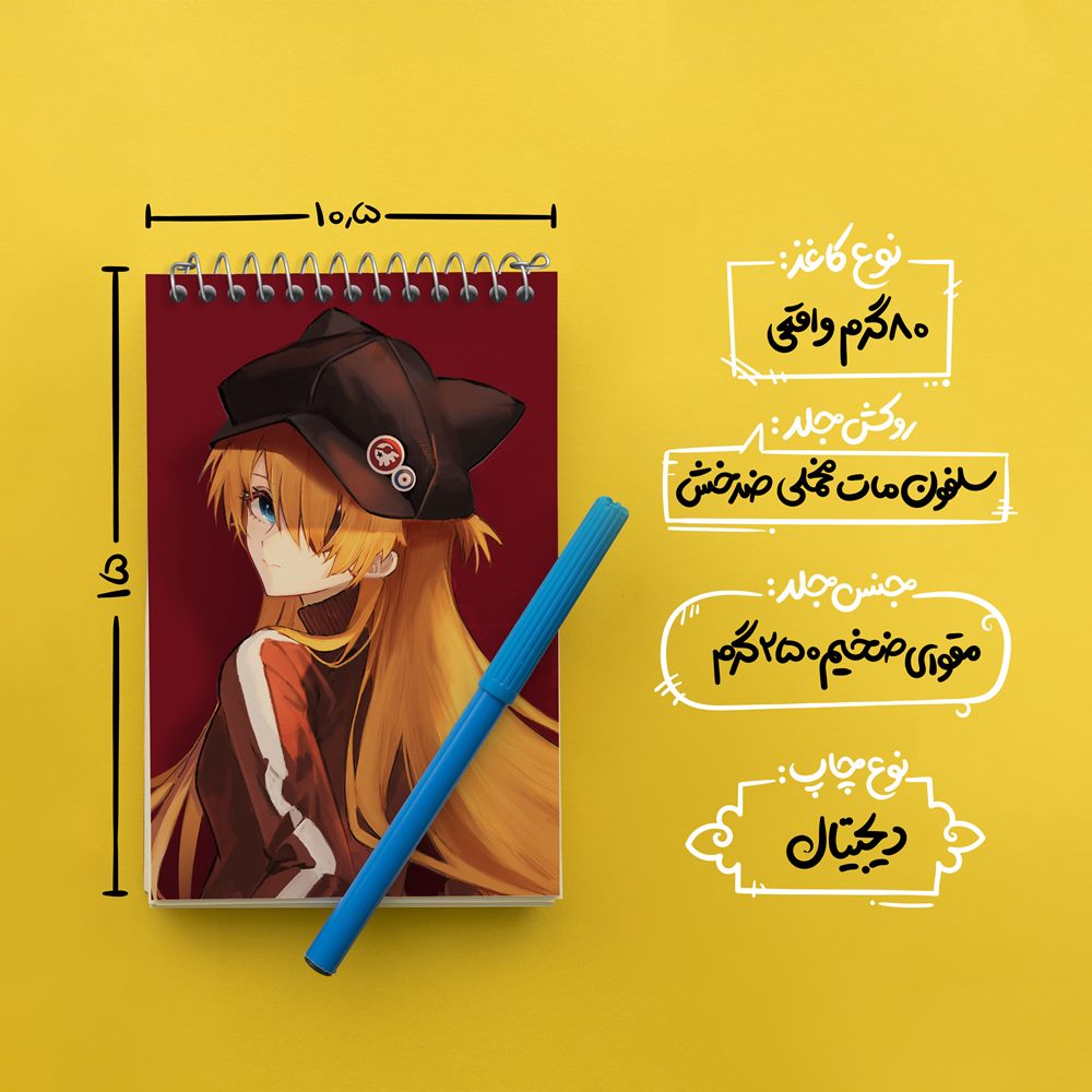 برند خندالو در زمینه تولید انواع دفاتر فانتزی و تحصیلی فعالیت میکند که به دلیل جذابیت ظاهری و طرح های متنوع طرفداران زیادی دارد. دفتر یادداشت خندالو طرح آسوکا چان انیمه اونگلیون محصولی مناسب برای همه عاشقان لوازم التحریر است و همچنین همه کسانی که بنا به موقعیت تحصیل یا شغلشان با دفتر و نوشت افزار زیاد سر و کار دارند. در تولید دفتر یادداشت خندالو طرح آسوکا چان انیمه اونگلیون از نوع صحافی فنر مارپیچ استفاده شده که در این نوع صحافی برگه‌ها به راحتی چرخیده و یا بیرون آورده می شوند.