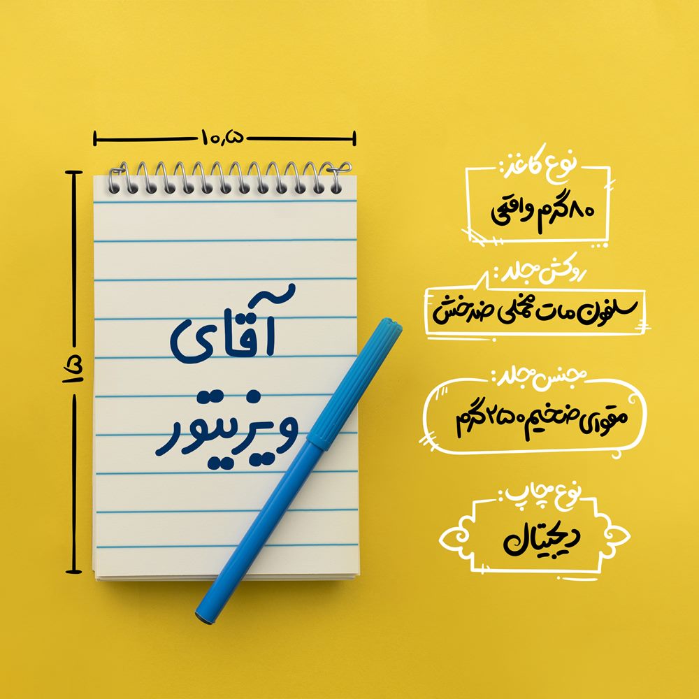 برند خندالو در زمینه تولید انواع دفاتر فانتزی و تحصیلی فعالیت میکند که به دلیل جذابیت ظاهری و طرح های متنوع طرفداران زیادی دارد. دفتر یادداشت خندالو طرح آقای ویزیتور محصولی مناسب برای همه عاشقان لوازم التحریر است و همچنین همه کسانی که بنا به موقعیت تحصیل یا شغلشان با دفتر و نوشت افزار زیاد سر و کار دارند. در تولید دفتر یادداشت خندالو طرح آقای ویزیتور از نوع صحافی فنر مارپیچ استفاده شده که در این نوع صحافی برگهها به راحتی چرخیده و یا بیرون آورده می شوند. دفتر های خندالو دارای جلد انعطاف پذیر از جنس مقوای گلاسه 250 گرم با روکش سلفون مات مخملی است که به شما امکان میدهد از دفتر خود بدون اینکه نگرانی از شکستن یا خراب شدن جلد را داشته باشید استفاده کنید و همچنین در این دفاتر از کاغذ 80 گرم با کیفیت استفاده شده که باعث میشود هنگام نوشتن به خوبی جوهر قلم بر روی صفحه نشسته و از خط خوردگیها جلوگیری کند. دفتر یادداشت خندالو با جنس و دوام مناسب، برگه های کاملاً سفید و خطوط طوسی دقیق را داراست که انسان را به نوشتن منظم و زیبا ترغیب میکند. طراحی کاملاً مناسب این دفاتر، به همراه کیفیت بالا، از آن یک محصول مورد علاقه و قابل اعتماد برای همه مقاطع تحصیلی میسازد. دفتر یادداشت خندالو طرح آقای ویزیتور انتخابی هوشمندانه و مناسب برای افرادی است که به دنبال دفتری با کیفیت و کاربرد عالی هستند. این دفتر، همراه خوبی برای شما در تمام مراحل تحصیل و کار خواهد بود و تجربهای لذتبخش از نوشتن و آموختن را به شما هدیه میدهد.