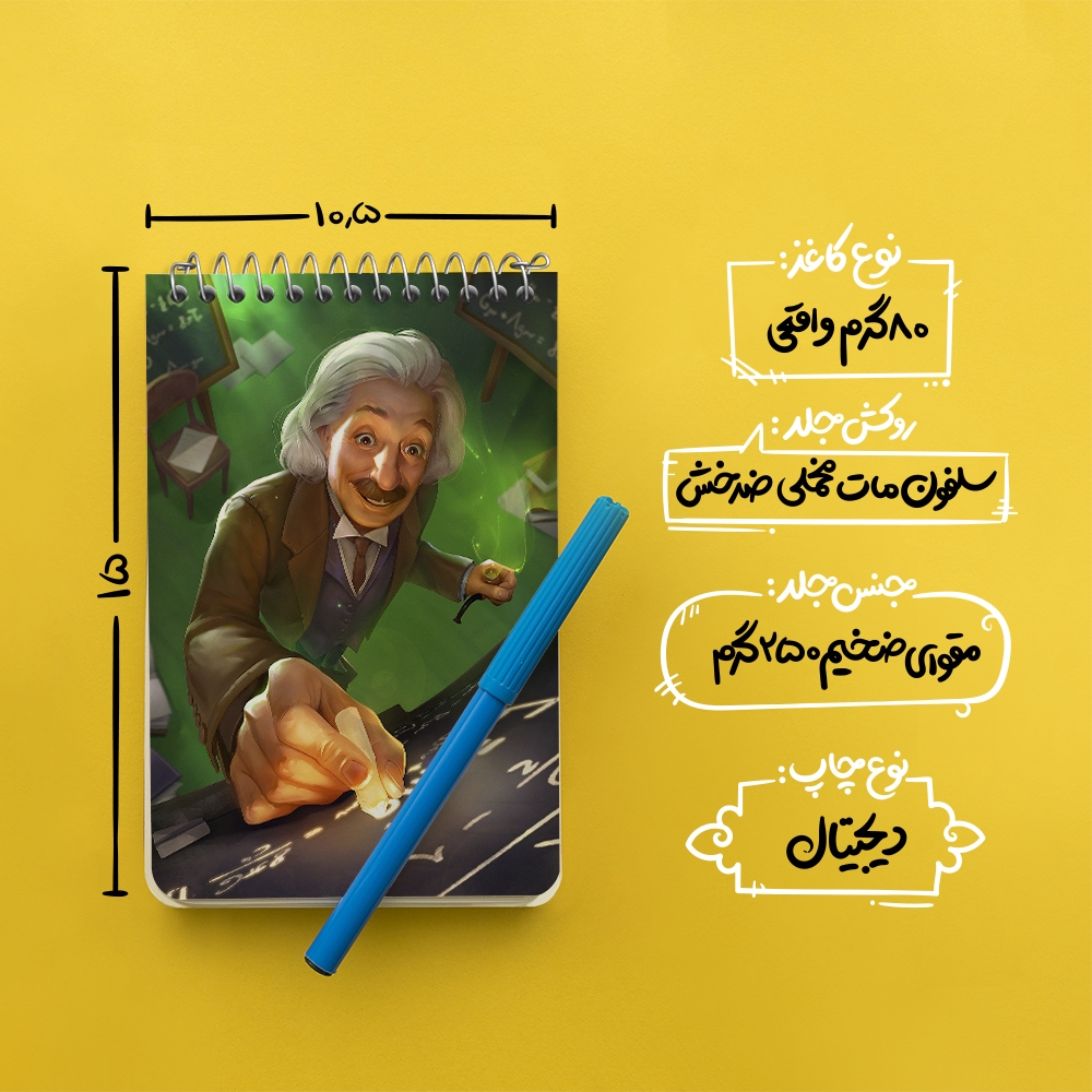 برند خندالو در زمینه تولید انواع دفاتر فانتزی و تحصیلی فعالیت میکند که به دلیل جذابیت ظاهری و طرح های متنوع طرفداران زیادی دارد. دفتر یادداشت خندالو طرح آلبرت اینشتین محصولی مناسب برای همه عاشقان لوازم التحریر است و همچنین همه کسانی که بنا به موقعیت تحصیل یا شغلشان با دفتر و نوشت افزار زیاد سر و کار دارند. در تولید دفتر یادداشت خندالو طرح آلبرت اینشتین از نوع صحافی فنر مارپیچ استفاده شده که در این نوع صحافی برگه‌ها به راحتی چرخیده و یا بیرون آورده می شوند.