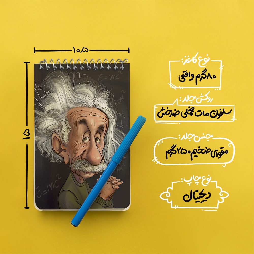 برند خندالو در زمینه تولید انواع دفاتر فانتزی و تحصیلی فعالیت میکند که به دلیل جذابیت ظاهری و طرح های متنوع طرفداران زیادی دارد. دفتر یادداشت خندالو طرح آلبرت اینشتین محصولی مناسب برای همه عاشقان لوازم التحریر است و همچنین همه کسانی که بنا به موقعیت تحصیل یا شغلشان با دفتر و نوشت افزار زیاد سر و کار دارند. در تولید دفتر یادداشت خندالو طرح آلبرت اینشتین از نوع صحافی فنر مارپیچ استفاده شده که در این نوع صحافی برگهها به راحتی چرخیده و یا بیرون آورده می شوند. دفتر های خندالو دارای جلد انعطاف پذیر از جنس مقوای گلاسه 250 گرم با روکش سلفون مات مخملی است که به شما امکان میدهد از دفتر خود بدون اینکه نگرانی از شکستن یا خراب شدن جلد را داشته باشید استفاده کنید و همچنین در این دفاتر از کاغذ 80 گرم با کیفیت استفاده شده که باعث میشود هنگام نوشتن به خوبی جوهر قلم بر روی صفحه نشسته و از خط خوردگیها جلوگیری کند. دفتر یادداشت خندالو با جنس و دوام مناسب، برگه های کاملاً سفید و خطوط طوسی دقیق را داراست که انسان را به نوشتن منظم و زیبا ترغیب میکند. طراحی کاملاً مناسب این دفاتر، به همراه کیفیت بالا، از آن یک محصول مورد علاقه و قابل اعتماد برای همه مقاطع تحصیلی میسازد. دفتر یادداشت خندالو طرح آلبرت اینشتین انتخابی هوشمندانه و مناسب برای افرادی است که به دنبال دفتری با کیفیت و کاربرد عالی هستند. این دفتر، همراه خوبی برای شما در تمام مراحل تحصیل و کار خواهد بود و تجربهای لذتبخش از نوشتن و آموختن را به شما هدیه میدهد.