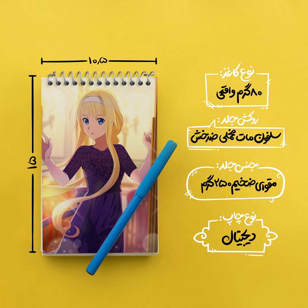 برند خندالو در زمینه تولید انواع دفاتر فانتزی و تحصیلی فعالیت میکند که به دلیل جذابیت ظاهری و طرح های متنوع طرفداران زیادی دارد. دفتر یادداشت خندالو طرح آلیس انیمه دختر محصولی مناسب برای همه عاشقان لوازم التحریر است و همچنین همه کسانی که بنا به موقعیت تحصیل یا شغلشان با دفتر و نوشت افزار زیاد سر و کار دارند. در تولید دفتر یادداشت خندالو طرح آلیس انیمه دختر از نوع صحافی فنر مارپیچ استفاده شده که در این نوع صحافی برگه‌ها به راحتی چرخیده و یا بیرون آورده می شوند.