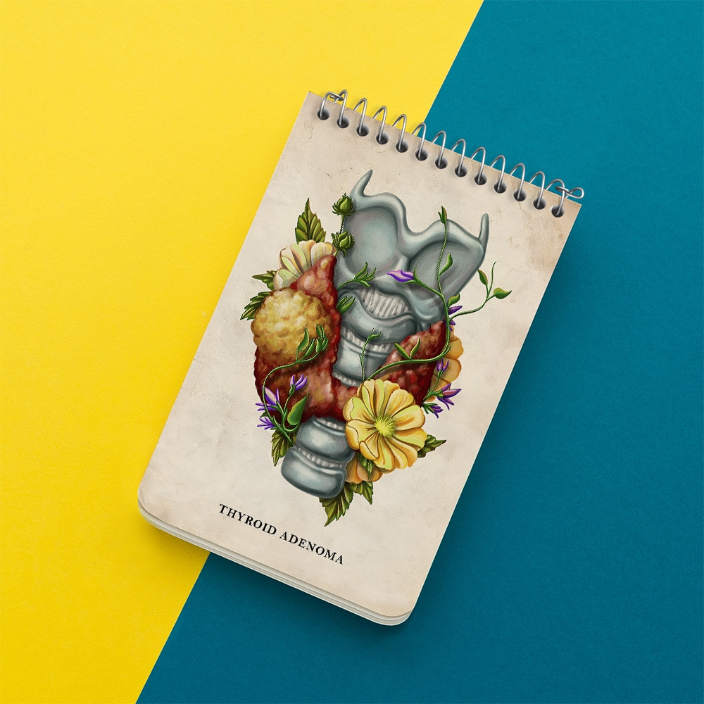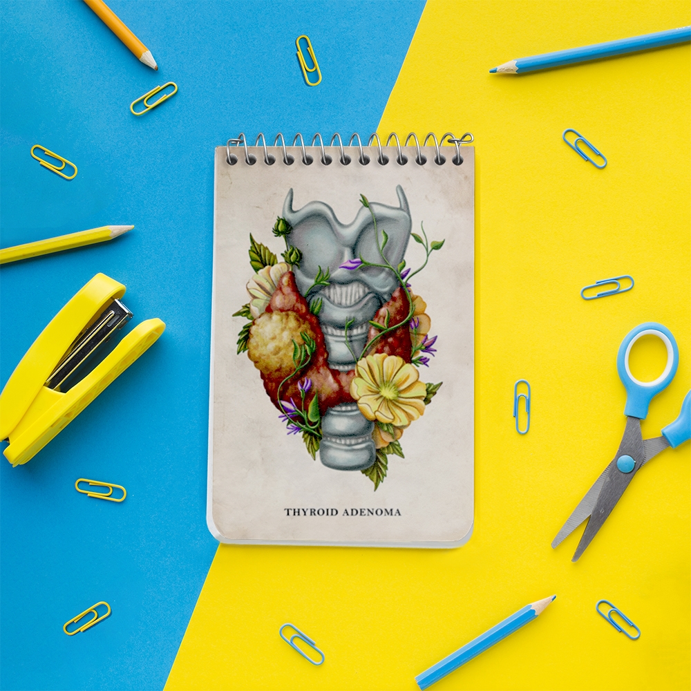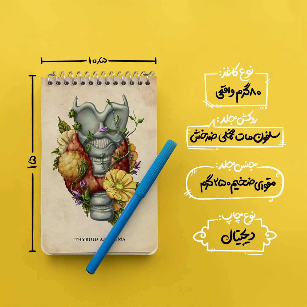 برند خندالو در زمینه تولید انواع دفاتر فانتزی و تحصیلی فعالیت میکند که به دلیل جذابیت ظاهری و طرح های متنوع طرفداران زیادی دارد. دفتر یادداشت خندالو طرح آناتومی تیروئید (Thyroid Anatomy) محصولی مناسب برای همه عاشقان لوازم التحریر است و همچنین همه کسانی که بنا به موقعیت تحصیل یا شغلشان با دفتر و نوشت افزار زیاد سر و کار دارند. در تولید دفتر یادداشت خندالو طرح آناتومی تیروئید (Thyroid Anatomy) از نوع صحافی فنر مارپیچ استفاده شده که در این نوع صحافی برگهها به راحتی چرخیده و یا بیرون آورده می شوند. دفتر های خندالو دارای جلد انعطاف پذیر از جنس مقوای گلاسه 250 گرم با روکش سلفون مات مخملی است که به شما امکان میدهد از دفتر خود بدون اینکه نگرانی از شکستن یا خراب شدن جلد را داشته باشید استفاده کنید و همچنین در این دفاتر از کاغذ 80 گرم با کیفیت استفاده شده که باعث میشود هنگام نوشتن به خوبی جوهر قلم بر روی صفحه نشسته و از خط خوردگیها جلوگیری کند. دفتر یادداشت خندالو با جنس و دوام مناسب، برگه های کاملاً سفید و خطوط طوسی دقیق را داراست که انسان را به نوشتن منظم و زیبا ترغیب میکند. طراحی کاملاً مناسب این دفاتر، به همراه کیفیت بالا، از آن یک محصول مورد علاقه و قابل اعتماد برای همه مقاطع تحصیلی میسازد. دفتر یادداشت خندالو طرح آناتومی تیروئید (Thyroid Anatomy) انتخابی هوشمندانه و مناسب برای افرادی است که به دنبال دفتری با کیفیت و کاربرد عالی هستند. این دفتر، همراه خوبی برای شما در تمام مراحل تحصیل و کار خواهد بود و تجربهای لذتبخش از نوشتن و آموختن را به شما هدیه میدهد.