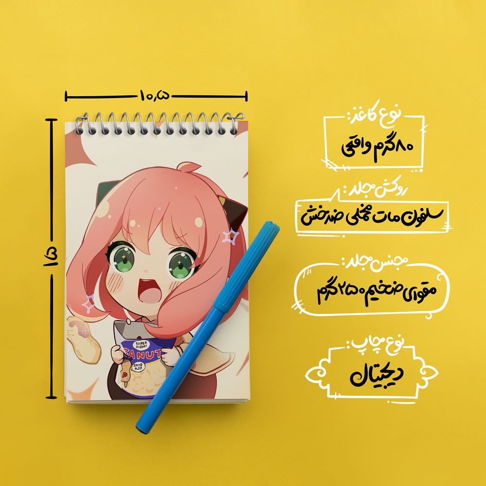 برند خندالو در زمینه تولید انواع دفاتر فانتزی و تحصیلی فعالیت میکند که به دلیل جذابیت ظاهری و طرح های متنوع طرفداران زیادی دارد. دفتر یادداشت خندالو طرح آنیا فورجر انیمه اسپای ایکس فمیلی Spy x Family محصولی مناسب برای همه عاشقان لوازم التحریر است و همچنین همه کسانی که بنا به موقعیت تحصیل یا شغلشان با دفتر و نوشت افزار زیاد سر و کار دارند. در تولید دفتر یادداشت خندالو طرح آنیا فورجر انیمه اسپای ایکس فمیلی Spy x Family از نوع صحافی فنر مارپیچ استفاده شده که در این نوع صحافی برگهها به راحتی چرخیده و یا بیرون آورده می شوند. دفتر های خندالو دارای جلد انعطاف پذیر از جنس مقوای گلاسه 250 گرم با روکش سلفون مات مخملی است که به شما امکان میدهد از دفتر خود بدون اینکه نگرانی از شکستن یا خراب شدن جلد را داشته باشید استفاده کنید و همچنین در این دفاتر از کاغذ 80 گرم با کیفیت استفاده شده که باعث میشود هنگام نوشتن به خوبی جوهر قلم بر روی صفحه نشسته و از خط خوردگیها جلوگیری کند. دفتر یادداشت خندالو با جنس و دوام مناسب، برگه های کاملاً سفید و خطوط طوسی دقیق را داراست که انسان را به نوشتن منظم و زیبا ترغیب میکند. طراحی کاملاً مناسب این دفاتر، به همراه کیفیت بالا، از آن یک محصول مورد علاقه و قابل اعتماد برای همه مقاطع تحصیلی میسازد. دفتر یادداشت خندالو طرح آنیا فورجر انیمه اسپای ایکس فمیلی Spy x Family انتخابی هوشمندانه و مناسب برای افرادی است که به دنبال دفتری با کیفیت و کاربرد عالی هستند. این دفتر، همراه خوبی برای شما در تمام مراحل تحصیل و کار خواهد بود و تجربهای لذتبخش از نوشتن و آموختن را به شما هدیه میدهد.