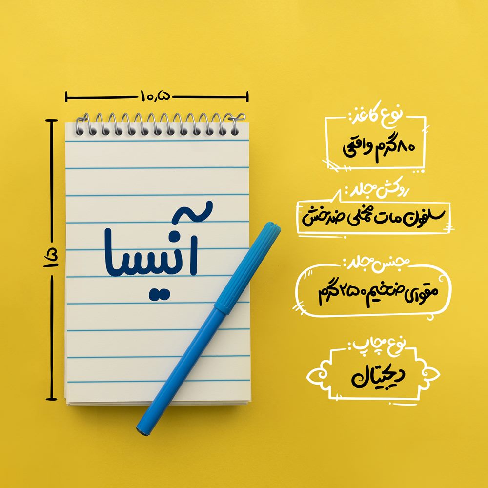 برند خندالو در زمینه تولید انواع دفاتر فانتزی و تحصیلی فعالیت میکند که به دلیل جذابیت ظاهری و طرح های متنوع طرفداران زیادی دارد. دفتر یادداشت خندالو طرح آنیسا محصولی مناسب برای همه عاشقان لوازم التحریر است و همچنین همه کسانی که بنا به موقعیت تحصیل یا شغلشان با دفتر و نوشت افزار زیاد سر و کار دارند. در تولید دفتر یادداشت خندالو طرح آنیسا از نوع صحافی فنر مارپیچ استفاده شده که در این نوع صحافی برگهها به راحتی چرخیده و یا بیرون آورده می شوند. دفتر های خندالو دارای جلد انعطاف پذیر از جنس مقوای گلاسه 250 گرم با روکش سلفون مات مخملی است که به شما امکان میدهد از دفتر خود بدون اینکه نگرانی از شکستن یا خراب شدن جلد را داشته باشید استفاده کنید و همچنین در این دفاتر از کاغذ 80 گرم با کیفیت استفاده شده که باعث میشود هنگام نوشتن به خوبی جوهر قلم بر روی صفحه نشسته و از خط خوردگیها جلوگیری کند. دفتر یادداشت خندالو با جنس و دوام مناسب، برگه های کاملاً سفید و خطوط طوسی دقیق را داراست که انسان را به نوشتن منظم و زیبا ترغیب میکند. طراحی کاملاً مناسب این دفاتر، به همراه کیفیت بالا، از آن یک محصول مورد علاقه و قابل اعتماد برای همه مقاطع تحصیلی میسازد. دفتر یادداشت خندالو طرح آنیسا انتخابی هوشمندانه و مناسب برای افرادی است که به دنبال دفتری با کیفیت و کاربرد عالی هستند. این دفتر، همراه خوبی برای شما در تمام مراحل تحصیل و کار خواهد بود و تجربهای لذتبخش از نوشتن و آموختن را به شما هدیه میدهد.
