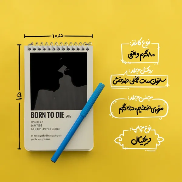 برند خندالو در زمینه تولید انواع دفاتر فانتزی و تحصیلی فعالیت میکند که به دلیل جذابیت ظاهری و طرح های متنوع طرفداران زیادی دارد. دفتر یادداشت خندالو طرح آهنگ Born to Die از لانا دل ری محصولی مناسب برای همه عاشقان لوازم التحریر است و همچنین همه کسانی که بنا به موقعیت تحصیل یا شغلشان با دفتر و نوشت افزار زیاد سر و کار دارند. در تولید دفتر یادداشت خندالو طرح آهنگ Born to Die از لانا دل ری از نوع صحافی فنر مارپیچ استفاده شده که در این نوع صحافی برگهها به راحتی چرخیده و یا بیرون آورده می شوند. دفتر های خندالو دارای جلد انعطاف پذیر از جنس مقوای گلاسه 250 گرم با روکش سلفون مات مخملی است که به شما امکان میدهد از دفتر خود بدون اینکه نگرانی از شکستن یا خراب شدن جلد را داشته باشید استفاده کنید و همچنین در این دفاتر از کاغذ 80 گرم با کیفیت استفاده شده که باعث میشود هنگام نوشتن به خوبی جوهر قلم بر روی صفحه نشسته و از خط خوردگیها جلوگیری کند. دفتر یادداشت خندالو با جنس و دوام مناسب، برگه های کاملاً سفید و خطوط طوسی دقیق را داراست که انسان را به نوشتن منظم و زیبا ترغیب میکند. طراحی کاملاً مناسب این دفاتر، به همراه کیفیت بالا، از آن یک محصول مورد علاقه و قابل اعتماد برای همه مقاطع تحصیلی میسازد. دفتر یادداشت خندالو طرح آهنگ Born to Die از لانا دل ری انتخابی هوشمندانه و مناسب برای افرادی است که به دنبال دفتری با کیفیت و کاربرد عالی هستند. این دفتر، همراه خوبی برای شما در تمام مراحل تحصیل و کار خواهد بود و تجربهای لذتبخش از نوشتن و آموختن را به شما هدیه میدهد.
