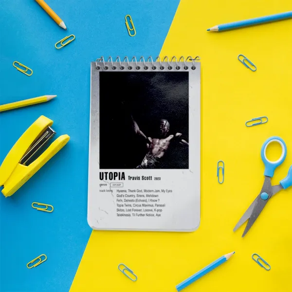 برند خندالو در زمینه تولید انواع دفاتر فانتزی و تحصیلی فعالیت میکند که به دلیل جذابیت ظاهری و طرح های متنوع طرفداران زیادی دارد. دفتر یادداشت خندالو طرح آهنگ Utopia تراویس اسکات محصولی مناسب برای همه عاشقان لوازم التحریر است و همچنین همه کسانی که بنا به موقعیت تحصیل یا شغلشان با دفتر و نوشت افزار زیاد سر و کار دارند. در تولید دفتر یادداشت خندالو طرح آهنگ Utopia تراویس اسکات از نوع صحافی فنر مارپیچ استفاده شده که در این نوع صحافی برگهها به راحتی چرخیده و یا بیرون آورده می شوند. دفتر های خندالو دارای جلد انعطاف پذیر از جنس مقوای گلاسه 250 گرم با روکش سلفون مات مخملی است که به شما امکان میدهد از دفتر خود بدون اینکه نگرانی از شکستن یا خراب شدن جلد را داشته باشید استفاده کنید و همچنین در این دفاتر از کاغذ 80 گرم با کیفیت استفاده شده که باعث میشود هنگام نوشتن به خوبی جوهر قلم بر روی صفحه نشسته و از خط خوردگیها جلوگیری کند. دفتر یادداشت خندالو با جنس و دوام مناسب، برگه های کاملاً سفید و خطوط طوسی دقیق را داراست که انسان را به نوشتن منظم و زیبا ترغیب میکند. طراحی کاملاً مناسب این دفاتر، به همراه کیفیت بالا، از آن یک محصول مورد علاقه و قابل اعتماد برای همه مقاطع تحصیلی میسازد. دفتر یادداشت خندالو طرح آهنگ Utopia تراویس اسکات انتخابی هوشمندانه و مناسب برای افرادی است که به دنبال دفتری با کیفیت و کاربرد عالی هستند. این دفتر، همراه خوبی برای شما در تمام مراحل تحصیل و کار خواهد بود و تجربهای لذتبخش از نوشتن و آموختن را به شما هدیه میدهد.