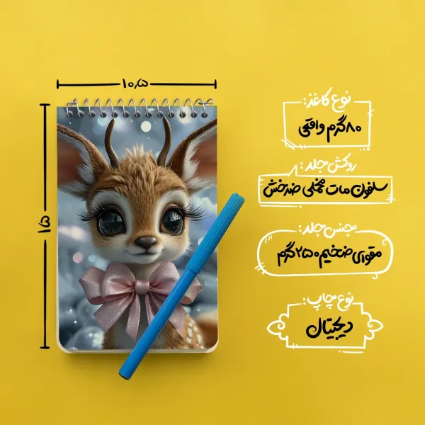 برند خندالو در زمینه تولید انواع دفاتر فانتزی و تحصیلی فعالیت میکند که به دلیل جذابیت ظاهری و طرح های متنوع طرفداران زیادی دارد. دفتر یادداشت خندالو طرح آهوی کیوت محصولی مناسب برای همه عاشقان لوازم التحریر است و همچنین همه کسانی که بنا به موقعیت تحصیل یا شغلشان با دفتر و نوشت افزار زیاد سر و کار دارند. در تولید دفتر یادداشت خندالو طرح آهوی کیوت از نوع صحافی فنر مارپیچ استفاده شده که در این نوع صحافی برگه‌ها به راحتی چرخیده و یا بیرون آورده می شوند.