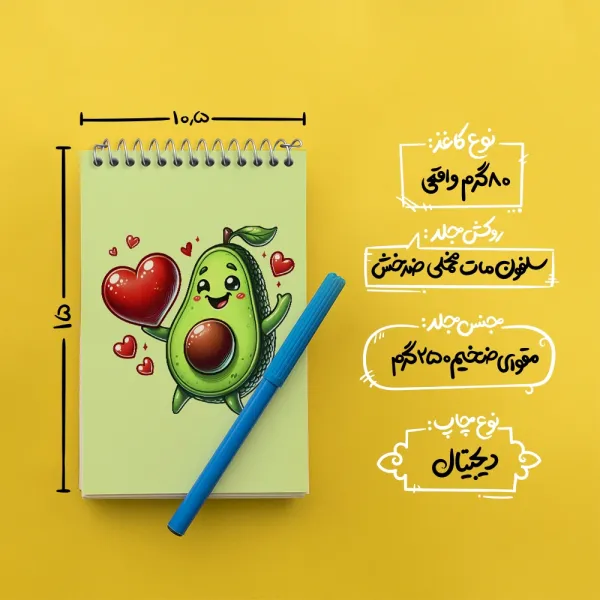 برند خندالو در زمینه تولید انواع دفاتر فانتزی و تحصیلی فعالیت میکند که به دلیل جذابیت ظاهری و طرح های متنوع طرفداران زیادی دارد. دفتر یادداشت خندالو طرح آووکادوی بانمک محصولی مناسب برای همه عاشقان لوازم التحریر است و همچنین همه کسانی که بنا به موقعیت تحصیل یا شغلشان با دفتر و نوشت افزار زیاد سر و کار دارند. در تولید دفتر یادداشت خندالو طرح آووکادوی بانمک از نوع صحافی فنر مارپیچ استفاده شده که در این نوع صحافی برگهها به راحتی چرخیده و یا بیرون آورده می شوند. دفتر های خندالو دارای جلد انعطاف پذیر از جنس مقوای گلاسه 250 گرم با روکش سلفون مات مخملی است که به شما امکان میدهد از دفتر خود بدون اینکه نگرانی از شکستن یا خراب شدن جلد را داشته باشید استفاده کنید و همچنین در این دفاتر از کاغذ 80 گرم با کیفیت استفاده شده که باعث میشود هنگام نوشتن به خوبی جوهر قلم بر روی صفحه نشسته و از خط خوردگیها جلوگیری کند. دفتر یادداشت خندالو با جنس و دوام مناسب، برگه های کاملاً سفید و خطوط طوسی دقیق را داراست که انسان را به نوشتن منظم و زیبا ترغیب میکند. طراحی کاملاً مناسب این دفاتر، به همراه کیفیت بالا، از آن یک محصول مورد علاقه و قابل اعتماد برای همه مقاطع تحصیلی میسازد. دفتر یادداشت خندالو طرح آووکادوی بانمک انتخابی هوشمندانه و مناسب برای افرادی است که به دنبال دفتری با کیفیت و کاربرد عالی هستند. این دفتر، همراه خوبی برای شما در تمام مراحل تحصیل و کار خواهد بود و تجربهای لذتبخش از نوشتن و آموختن را به شما هدیه میدهد.
