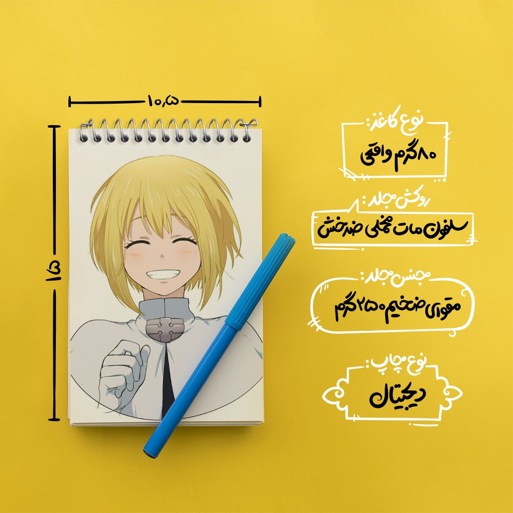 برند خندالو در زمینه تولید انواع دفاتر فانتزی و تحصیلی فعالیت میکند که به دلیل جذابیت ظاهری و طرح های متنوع طرفداران زیادی دارد. دفتر یادداشت خندالو طرح آیریس انیمه نیروی آتش محصولی مناسب برای همه عاشقان لوازم التحریر است و همچنین همه کسانی که بنا به موقعیت تحصیل یا شغلشان با دفتر و نوشت افزار زیاد سر و کار دارند. در تولید دفتر یادداشت خندالو طرح آیریس انیمه نیروی آتش از نوع صحافی فنر مارپیچ استفاده شده که در این نوع صحافی برگهها به راحتی چرخیده و یا بیرون آورده می شوند. دفتر های خندالو دارای جلد انعطاف پذیر از جنس مقوای گلاسه 250 گرم با روکش سلفون مات مخملی است که به شما امکان میدهد از دفتر خود بدون اینکه نگرانی از شکستن یا خراب شدن جلد را داشته باشید استفاده کنید و همچنین در این دفاتر از کاغذ 80 گرم با کیفیت استفاده شده که باعث میشود هنگام نوشتن به خوبی جوهر قلم بر روی صفحه نشسته و از خط خوردگیها جلوگیری کند. دفتر یادداشت خندالو با جنس و دوام مناسب، برگه های کاملاً سفید و خطوط طوسی دقیق را داراست که انسان را به نوشتن منظم و زیبا ترغیب میکند. طراحی کاملاً مناسب این دفاتر، به همراه کیفیت بالا، از آن یک محصول مورد علاقه و قابل اعتماد برای همه مقاطع تحصیلی میسازد. دفتر یادداشت خندالو طرح آیریس انیمه نیروی آتش انتخابی هوشمندانه و مناسب برای افرادی است که به دنبال دفتری با کیفیت و کاربرد عالی هستند. این دفتر، همراه خوبی برای شما در تمام مراحل تحصیل و کار خواهد بود و تجربهای لذتبخش از نوشتن و آموختن را به شما هدیه میدهد.