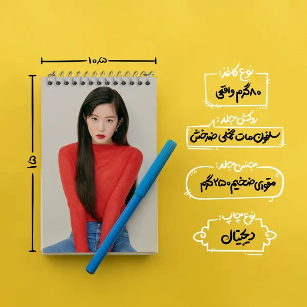 برند خندالو در زمینه تولید انواع دفاتر فانتزی و تحصیلی فعالیت میکند که به دلیل جذابیت ظاهری و طرح های متنوع طرفداران زیادی دارد. دفتر یادداشت خندالو طرح آیرین گروه رد ولوت Red Velvet محصولی مناسب برای همه عاشقان لوازم التحریر است و همچنین همه کسانی که بنا به موقعیت تحصیل یا شغلشان با دفتر و نوشت افزار زیاد سر و کار دارند. در تولید دفتر یادداشت خندالو طرح آیرین گروه رد ولوت Red Velvet از نوع صحافی فنر مارپیچ استفاده شده که در این نوع صحافی برگهها به راحتی چرخیده و یا بیرون آورده می شوند. دفتر های خندالو دارای جلد انعطاف پذیر از جنس مقوای گلاسه 250 گرم با روکش سلفون مات مخملی است که به شما امکان میدهد از دفتر خود بدون اینکه نگرانی از شکستن یا خراب شدن جلد را داشته باشید استفاده کنید و همچنین در این دفاتر از کاغذ 80 گرم با کیفیت استفاده شده که باعث میشود هنگام نوشتن به خوبی جوهر قلم بر روی صفحه نشسته و از خط خوردگیها جلوگیری کند. دفتر یادداشت خندالو با جنس و دوام مناسب، برگه های کاملاً سفید و خطوط طوسی دقیق را داراست که انسان را به نوشتن منظم و زیبا ترغیب میکند. طراحی کاملاً مناسب این دفاتر، به همراه کیفیت بالا، از آن یک محصول مورد علاقه و قابل اعتماد برای همه مقاطع تحصیلی میسازد. دفتر یادداشت خندالو طرح آیرین گروه رد ولوت Red Velvet انتخابی هوشمندانه و مناسب برای افرادی است که به دنبال دفتری با کیفیت و کاربرد عالی هستند. این دفتر، همراه خوبی برای شما در تمام مراحل تحصیل و کار خواهد بود و تجربهای لذتبخش از نوشتن و آموختن را به شما هدیه میدهد.