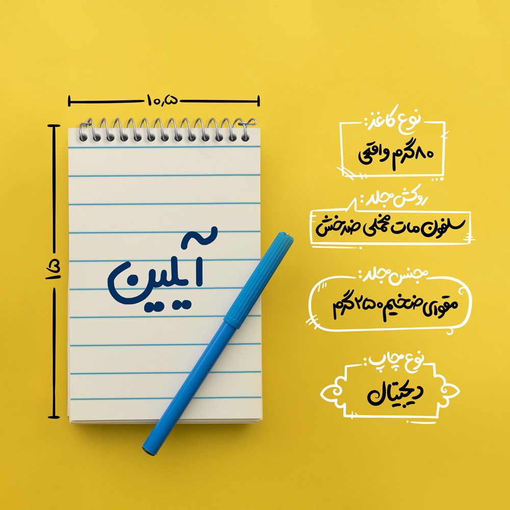 برند خندالو در زمینه تولید انواع دفاتر فانتزی و تحصیلی فعالیت میکند که به دلیل جذابیت ظاهری و طرح های متنوع طرفداران زیادی دارد. دفتر یادداشت خندالو طرح آیلین محصولی مناسب برای همه عاشقان لوازم التحریر است و همچنین همه کسانی که بنا به موقعیت تحصیل یا شغلشان با دفتر و نوشت افزار زیاد سر و کار دارند. در تولید دفتر یادداشت خندالو طرح آیلین از نوع صحافی فنر مارپیچ استفاده شده که در این نوع صحافی برگهها به راحتی چرخیده و یا بیرون آورده می شوند. دفتر های خندالو دارای جلد انعطاف پذیر از جنس مقوای گلاسه 250 گرم با روکش سلفون مات مخملی است که به شما امکان میدهد از دفتر خود بدون اینکه نگرانی از شکستن یا خراب شدن جلد را داشته باشید استفاده کنید و همچنین در این دفاتر از کاغذ 80 گرم با کیفیت استفاده شده که باعث میشود هنگام نوشتن به خوبی جوهر قلم بر روی صفحه نشسته و از خط خوردگیها جلوگیری کند. دفتر یادداشت خندالو با جنس و دوام مناسب، برگه های کاملاً سفید و خطوط طوسی دقیق را داراست که انسان را به نوشتن منظم و زیبا ترغیب میکند. طراحی کاملاً مناسب این دفاتر، به همراه کیفیت بالا، از آن یک محصول مورد علاقه و قابل اعتماد برای همه مقاطع تحصیلی میسازد. دفتر یادداشت خندالو طرح آیلین انتخابی هوشمندانه و مناسب برای افرادی است که به دنبال دفتری با کیفیت و کاربرد عالی هستند. این دفتر، همراه خوبی برای شما در تمام مراحل تحصیل و کار خواهد بود و تجربهای لذتبخش از نوشتن و آموختن را به شما هدیه میدهد.