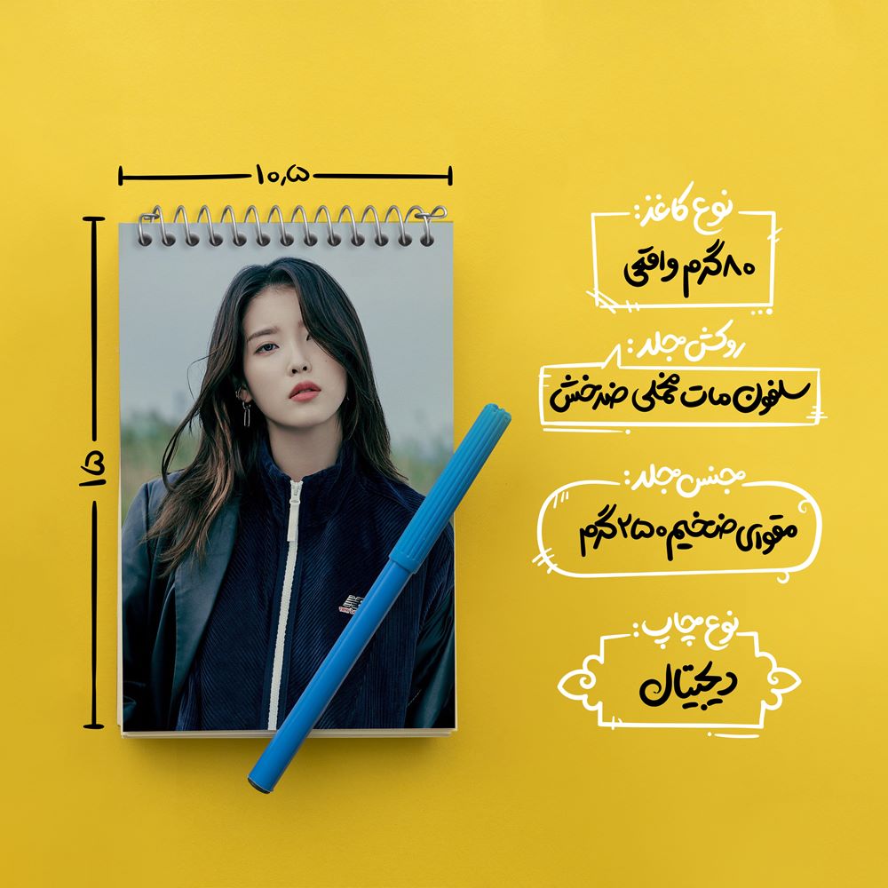 برند خندالو در زمینه تولید انواع دفاتر فانتزی و تحصیلی فعالیت میکند که به دلیل جذابیت ظاهری و طرح های متنوع طرفداران زیادی دارد. دفتر یادداشت خندالو طرح آیو IU محصولی مناسب برای همه عاشقان لوازم التحریر است و همچنین همه کسانی که بنا به موقعیت تحصیل یا شغلشان با دفتر و نوشت افزار زیاد سر و کار دارند. در تولید دفتر یادداشت خندالو طرح آیو IU از نوع صحافی فنر مارپیچ استفاده شده که در این نوع صحافی برگه‌ها به راحتی چرخیده و یا بیرون آورده می شوند.