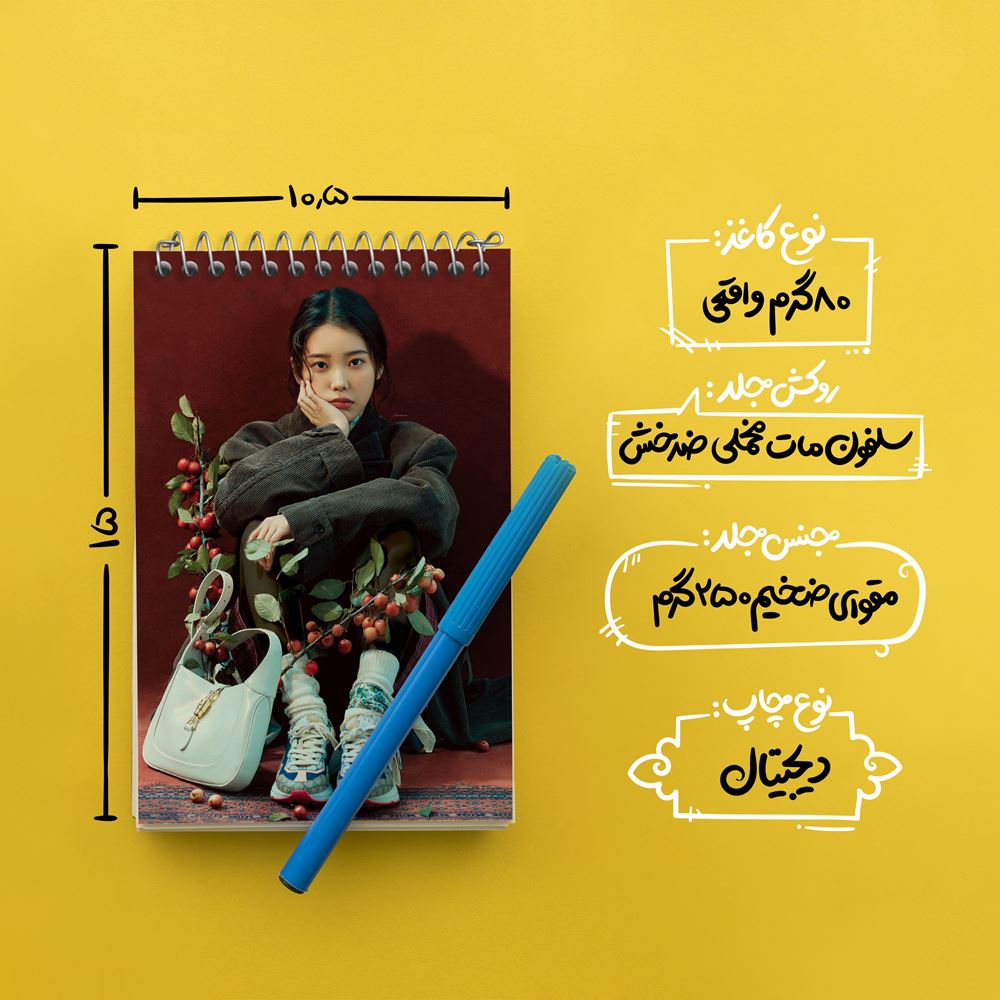 برند خندالو در زمینه تولید انواع دفاتر فانتزی و تحصیلی فعالیت میکند که به دلیل جذابیت ظاهری و طرح های متنوع طرفداران زیادی دارد. دفتر یادداشت خندالو طرح آیو IU محصولی مناسب برای همه عاشقان لوازم التحریر است و همچنین همه کسانی که بنا به موقعیت تحصیل یا شغلشان با دفتر و نوشت افزار زیاد سر و کار دارند. در تولید دفتر یادداشت خندالو طرح آیو IU از نوع صحافی فنر مارپیچ استفاده شده که در این نوع صحافی برگه‌ها به راحتی چرخیده و یا بیرون آورده می شوند.