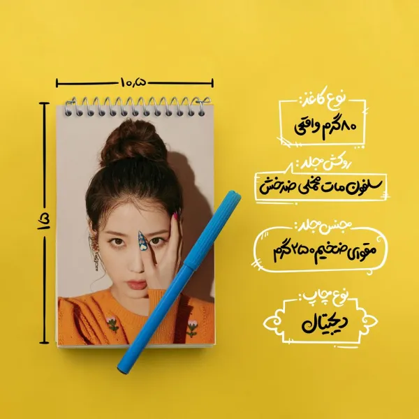 برند خندالو در زمینه تولید انواع دفاتر فانتزی و تحصیلی فعالیت میکند که به دلیل جذابیت ظاهری و طرح های متنوع طرفداران زیادی دارد. دفتر یادداشت خندالو طرح آیو IU محصولی مناسب برای همه عاشقان لوازم التحریر است و همچنین همه کسانی که بنا به موقعیت تحصیل یا شغلشان با دفتر و نوشت افزار زیاد سر و کار دارند. در تولید دفتر یادداشت خندالو طرح آیو IU از نوع صحافی فنر مارپیچ استفاده شده که در این نوع صحافی برگه‌ها به راحتی چرخیده و یا بیرون آورده می شوند.