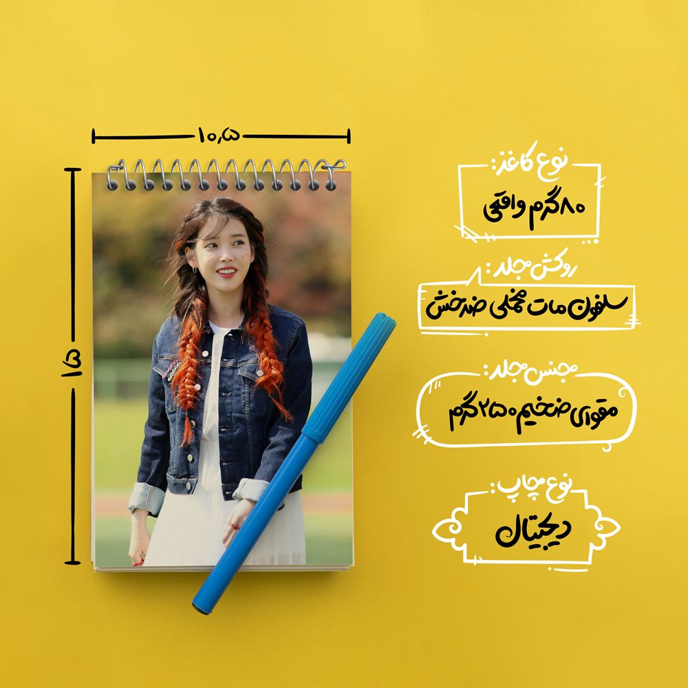 برند خندالو در زمینه تولید انواع دفاتر فانتزی و تحصیلی فعالیت میکند که به دلیل جذابیت ظاهری و طرح های متنوع طرفداران زیادی دارد. دفتر یادداشت خندالو طرح آیو IU محصولی مناسب برای همه عاشقان لوازم التحریر است و همچنین همه کسانی که بنا به موقعیت تحصیل یا شغلشان با دفتر و نوشت افزار زیاد سر و کار دارند. در تولید دفتر یادداشت خندالو طرح آیو IU از نوع صحافی فنر مارپیچ استفاده شده که در این نوع صحافی برگه‌ها به راحتی چرخیده و یا بیرون آورده می شوند.