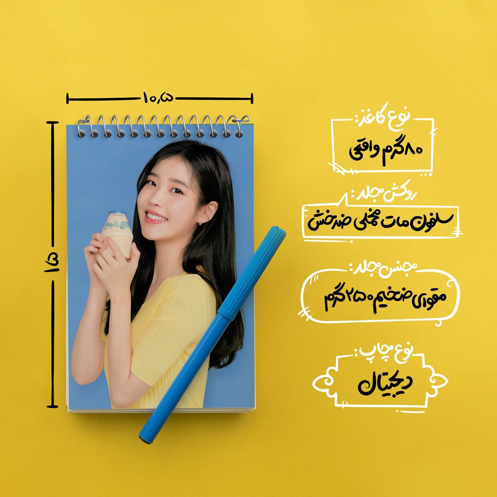 برند خندالو در زمینه تولید انواع دفاتر فانتزی و تحصیلی فعالیت میکند که به دلیل جذابیت ظاهری و طرح های متنوع طرفداران زیادی دارد. دفتر یادداشت خندالو طرح آیو IU محصولی مناسب برای همه عاشقان لوازم التحریر است و همچنین همه کسانی که بنا به موقعیت تحصیل یا شغلشان با دفتر و نوشت افزار زیاد سر و کار دارند. در تولید دفتر یادداشت خندالو طرح آیو IU از نوع صحافی فنر مارپیچ استفاده شده که در این نوع صحافی برگه‌ها به راحتی چرخیده و یا بیرون آورده می شوند.