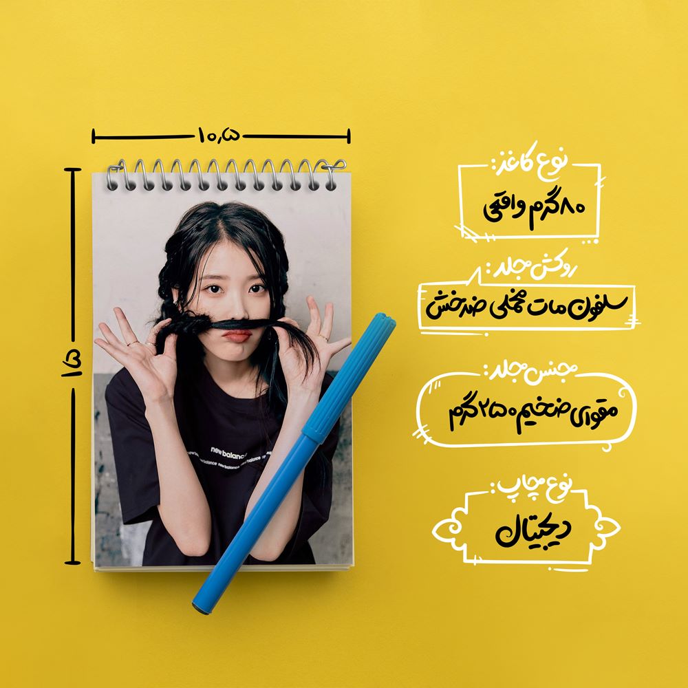 برند خندالو در زمینه تولید انواع دفاتر فانتزی و تحصیلی فعالیت میکند که به دلیل جذابیت ظاهری و طرح های متنوع طرفداران زیادی دارد. دفتر یادداشت خندالو طرح آیو IU محصولی مناسب برای همه عاشقان لوازم التحریر است و همچنین همه کسانی که بنا به موقعیت تحصیل یا شغلشان با دفتر و نوشت افزار زیاد سر و کار دارند. در تولید دفتر یادداشت خندالو طرح آیو IU از نوع صحافی فنر مارپیچ استفاده شده که در این نوع صحافی برگه‌ها به راحتی چرخیده و یا بیرون آورده می شوند.
