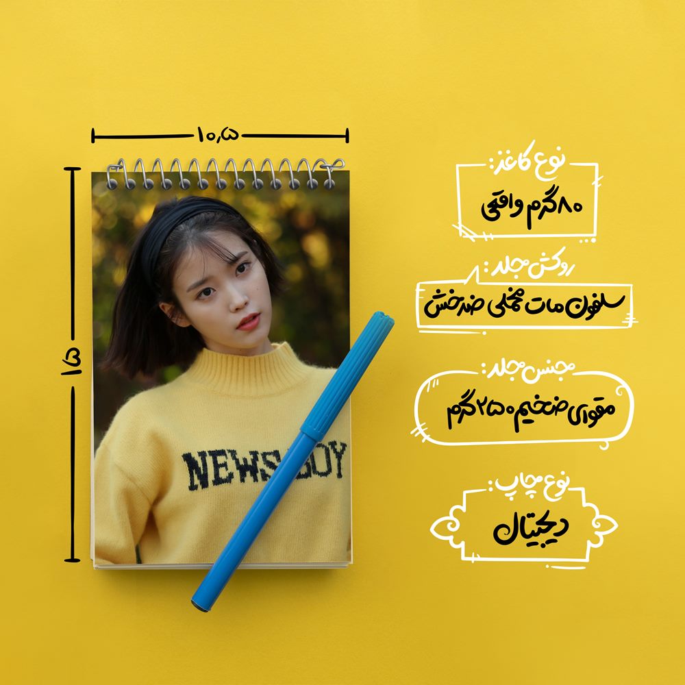 برند خندالو در زمینه تولید انواع دفاتر فانتزی و تحصیلی فعالیت میکند که به دلیل جذابیت ظاهری و طرح های متنوع طرفداران زیادی دارد. دفتر یادداشت خندالو طرح آیو IU محصولی مناسب برای همه عاشقان لوازم التحریر است و همچنین همه کسانی که بنا به موقعیت تحصیل یا شغلشان با دفتر و نوشت افزار زیاد سر و کار دارند. در تولید دفتر یادداشت خندالو طرح آیو IU از نوع صحافی فنر مارپیچ استفاده شده که در این نوع صحافی برگه‌ها به راحتی چرخیده و یا بیرون آورده می شوند.