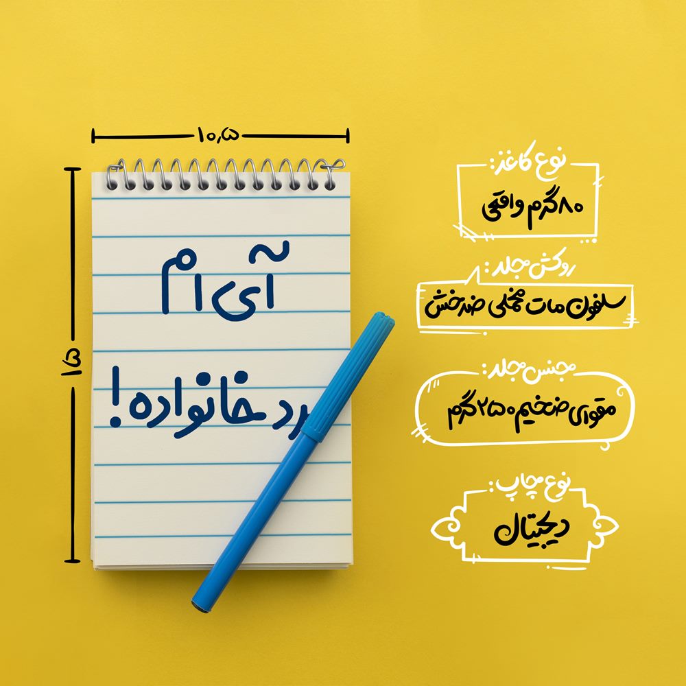 برند خندالو در زمینه تولید انواع دفاتر فانتزی و تحصیلی فعالیت میکند که به دلیل جذابیت ظاهری و طرح های متنوع طرفداران زیادی دارد. دفتر یادداشت خندالو طرح آی ام مرد خانواده ! محصولی مناسب برای همه عاشقان لوازم التحریر است و همچنین همه کسانی که بنا به موقعیت تحصیل یا شغلشان با دفتر و نوشت افزار زیاد سر و کار دارند. در تولید دفتر یادداشت خندالو طرح آی ام مرد خانواده ! از نوع صحافی فنر مارپیچ استفاده شده که در این نوع صحافی برگهها به راحتی چرخیده و یا بیرون آورده می شوند. دفتر های خندالو دارای جلد انعطاف پذیر از جنس مقوای گلاسه 250 گرم با روکش سلفون مات مخملی است که به شما امکان میدهد از دفتر خود بدون اینکه نگرانی از شکستن یا خراب شدن جلد را داشته باشید استفاده کنید و همچنین در این دفاتر از کاغذ 80 گرم با کیفیت استفاده شده که باعث میشود هنگام نوشتن به خوبی جوهر قلم بر روی صفحه نشسته و از خط خوردگیها جلوگیری کند. دفتر یادداشت خندالو با جنس و دوام مناسب، برگه های کاملاً سفید و خطوط طوسی دقیق را داراست که انسان را به نوشتن منظم و زیبا ترغیب میکند. طراحی کاملاً مناسب این دفاتر، به همراه کیفیت بالا، از آن یک محصول مورد علاقه و قابل اعتماد برای همه مقاطع تحصیلی میسازد. دفتر یادداشت خندالو طرح آی ام مرد خانواده ! انتخابی هوشمندانه و مناسب برای افرادی است که به دنبال دفتری با کیفیت و کاربرد عالی هستند. این دفتر، همراه خوبی برای شما در تمام مراحل تحصیل و کار خواهد بود و تجربهای لذتبخش از نوشتن و آموختن را به شما هدیه میدهد.