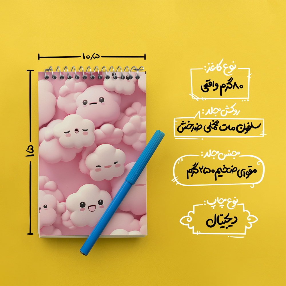 برند خندالو در زمینه تولید انواع دفاتر فانتزی و تحصیلی فعالیت میکند که به دلیل جذابیت ظاهری و طرح های متنوع طرفداران زیادی دارد. دفتر یادداشت خندالو طرح ابر کیوت محصولی مناسب برای همه عاشقان لوازم التحریر است و همچنین همه کسانی که بنا به موقعیت تحصیل یا شغلشان با دفتر و نوشت افزار زیاد سر و کار دارند. در تولید دفتر یادداشت خندالو طرح ابر کیوت از نوع صحافی فنر مارپیچ استفاده شده که در این نوع صحافی برگهها به راحتی چرخیده و یا بیرون آورده می شوند. دفتر های خندالو دارای جلد انعطاف پذیر از جنس مقوای گلاسه 250 گرم با روکش سلفون مات مخملی است که به شما امکان میدهد از دفتر خود بدون اینکه نگرانی از شکستن یا خراب شدن جلد را داشته باشید استفاده کنید و همچنین در این دفاتر از کاغذ 80 گرم با کیفیت استفاده شده که باعث میشود هنگام نوشتن به خوبی جوهر قلم بر روی صفحه نشسته و از خط خوردگیها جلوگیری کند. دفتر یادداشت خندالو با جنس و دوام مناسب، برگه های کاملاً سفید و خطوط طوسی دقیق را داراست که انسان را به نوشتن منظم و زیبا ترغیب میکند. طراحی کاملاً مناسب این دفاتر، به همراه کیفیت بالا، از آن یک محصول مورد علاقه و قابل اعتماد برای همه مقاطع تحصیلی میسازد. دفتر یادداشت خندالو طرح ابر کیوت انتخابی هوشمندانه و مناسب برای افرادی است که به دنبال دفتری با کیفیت و کاربرد عالی هستند. این دفتر، همراه خوبی برای شما در تمام مراحل تحصیل و کار خواهد بود و تجربهای لذتبخش از نوشتن و آموختن را به شما هدیه میدهد.