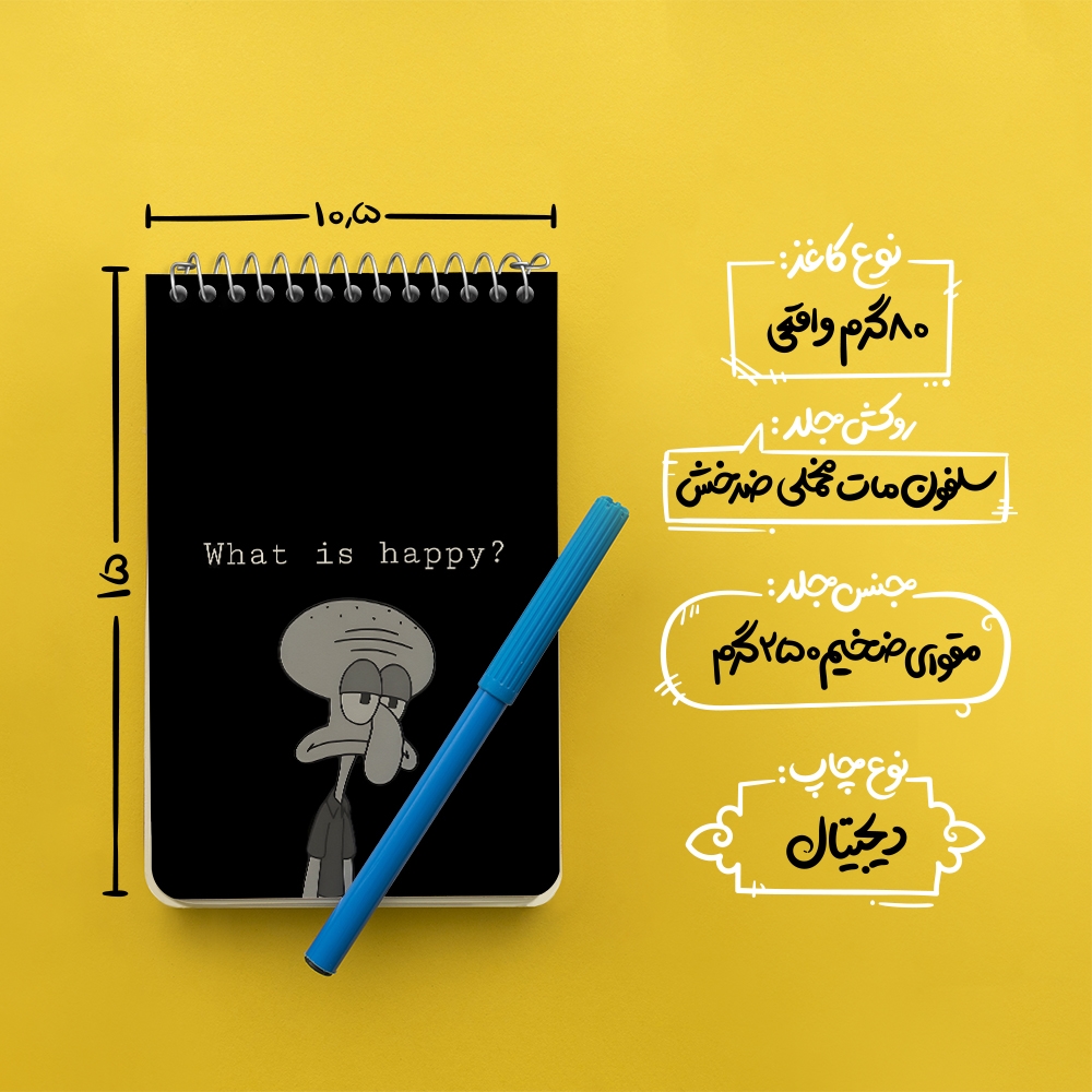 برند خندالو در زمینه تولید انواع دفاتر فانتزی و تحصیلی فعالیت میکند که به دلیل جذابیت ظاهری و طرح های متنوع طرفداران زیادی دارد. دفتر یادداشت خندالو طرح اختاپوس باب اسفنجی محصولی مناسب برای همه عاشقان لوازم التحریر است و همچنین همه کسانی که بنا به موقعیت تحصیل یا شغلشان با دفتر و نوشت افزار زیاد سر و کار دارند. در تولید دفتر یادداشت خندالو طرح اختاپوس باب اسفنجی از نوع صحافی فنر مارپیچ استفاده شده که در این نوع صحافی برگه‌ها به راحتی چرخیده و یا بیرون آورده می شوند.
