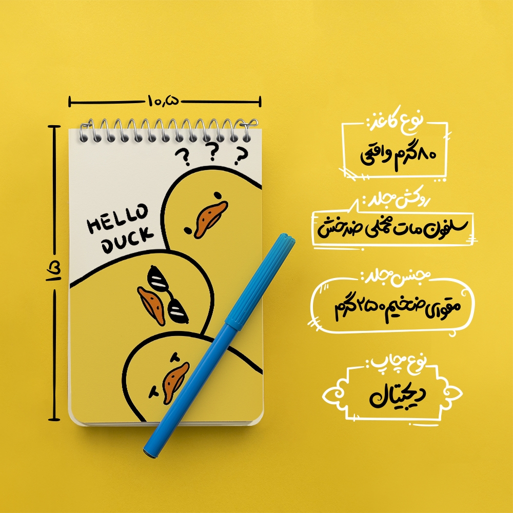 برند خندالو در زمینه تولید انواع دفاتر فانتزی و تحصیلی فعالیت میکند که به دلیل جذابیت ظاهری و طرح های متنوع طرفداران زیادی دارد. دفتر یادداشت خندالو طرح اردک بامزه محصولی مناسب برای همه عاشقان لوازم التحریر است و همچنین همه کسانی که بنا به موقعیت تحصیل یا شغلشان با دفتر و نوشت افزار زیاد سر و کار دارند. در تولید دفتر یادداشت خندالو طرح اردک بامزه از نوع صحافی فنر مارپیچ استفاده شده که در این نوع صحافی برگه‌ها به راحتی چرخیده و یا بیرون آورده می شوند.