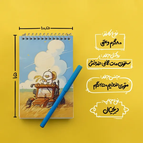 برند خندالو در زمینه تولید انواع دفاتر فانتزی و تحصیلی فعالیت میکند که به دلیل جذابیت ظاهری و طرح های متنوع طرفداران زیادی دارد. دفتر یادداشت خندالو طرح اردک کشاورز محصولی مناسب برای همه عاشقان لوازم التحریر است و همچنین همه کسانی که بنا به موقعیت تحصیل یا شغلشان با دفتر و نوشت افزار زیاد سر و کار دارند. در تولید دفتر یادداشت خندالو طرح اردک کشاورز از نوع صحافی فنر مارپیچ استفاده شده که در این نوع صحافی برگهها به راحتی چرخیده و یا بیرون آورده می شوند. دفتر های خندالو دارای جلد انعطاف پذیر از جنس مقوای گلاسه 250 گرم با روکش سلفون مات مخملی است که به شما امکان میدهد از دفتر خود بدون اینکه نگرانی از شکستن یا خراب شدن جلد را داشته باشید استفاده کنید و همچنین در این دفاتر از کاغذ 80 گرم با کیفیت استفاده شده که باعث میشود هنگام نوشتن به خوبی جوهر قلم بر روی صفحه نشسته و از خط خوردگیها جلوگیری کند. دفتر یادداشت خندالو با جنس و دوام مناسب، برگه های کاملاً سفید و خطوط طوسی دقیق را داراست که انسان را به نوشتن منظم و زیبا ترغیب میکند. طراحی کاملاً مناسب این دفاتر، به همراه کیفیت بالا، از آن یک محصول مورد علاقه و قابل اعتماد برای همه مقاطع تحصیلی میسازد. دفتر یادداشت خندالو طرح اردک کشاورز انتخابی هوشمندانه و مناسب برای افرادی است که به دنبال دفتری با کیفیت و کاربرد عالی هستند. این دفتر، همراه خوبی برای شما در تمام مراحل تحصیل و کار خواهد بود و تجربهای لذتبخش از نوشتن و آموختن را به شما هدیه میدهد.