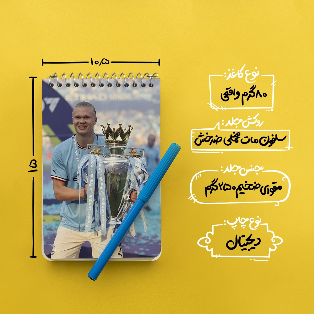 برند خندالو در زمینه تولید انواع دفاتر فانتزی و تحصیلی فعالیت میکند که به دلیل جذابیت ظاهری و طرح های متنوع طرفداران زیادی دارد. دفتر یادداشت خندالو طرح ارلینگ هالند (Erling Haaland) محصولی مناسب برای همه عاشقان لوازم التحریر است و همچنین همه کسانی که بنا به موقعیت تحصیل یا شغلشان با دفتر و نوشت افزار زیاد سر و کار دارند. در تولید دفتر یادداشت خندالو طرح ارلینگ هالند (Erling Haaland) از نوع صحافی فنر مارپیچ استفاده شده که در این نوع صحافی برگهها به راحتی چرخیده و یا بیرون آورده می شوند. دفتر های خندالو دارای جلد انعطاف پذیر از جنس مقوای گلاسه 250 گرم با روکش سلفون مات مخملی است که به شما امکان میدهد از دفتر خود بدون اینکه نگرانی از شکستن یا خراب شدن جلد را داشته باشید استفاده کنید و همچنین در این دفاتر از کاغذ 80 گرم با کیفیت استفاده شده که باعث میشود هنگام نوشتن به خوبی جوهر قلم بر روی صفحه نشسته و از خط خوردگیها جلوگیری کند. دفتر یادداشت خندالو با جنس و دوام مناسب، برگه های کاملاً سفید و خطوط طوسی دقیق را داراست که انسان را به نوشتن منظم و زیبا ترغیب میکند. طراحی کاملاً مناسب این دفاتر، به همراه کیفیت بالا، از آن یک محصول مورد علاقه و قابل اعتماد برای همه مقاطع تحصیلی میسازد. دفتر یادداشت خندالو طرح ارلینگ هالند (Erling Haaland) انتخابی هوشمندانه و مناسب برای افرادی است که به دنبال دفتری با کیفیت و کاربرد عالی هستند. این دفتر، همراه خوبی برای شما در تمام مراحل تحصیل و کار خواهد بود و تجربهای لذتبخش از نوشتن و آموختن را به شما هدیه میدهد.