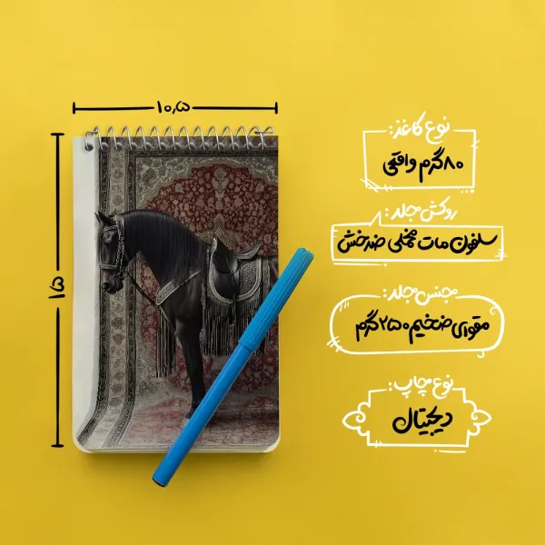 برند خندالو در زمینه تولید انواع دفاتر فانتزی و تحصیلی فعالیت میکند که به دلیل جذابیت ظاهری و طرح های متنوع طرفداران زیادی دارد. دفتر یادداشت خندالو طرح اسب اصیل محصولی مناسب برای همه عاشقان لوازم التحریر است و همچنین همه کسانی که بنا به موقعیت تحصیل یا شغلشان با دفتر و نوشت افزار زیاد سر و کار دارند. در تولید دفتر یادداشت خندالو طرح اسب اصیل از نوع صحافی فنر مارپیچ استفاده شده که در این نوع صحافی برگهها به راحتی چرخیده و یا بیرون آورده می شوند. دفتر های خندالو دارای جلد انعطاف پذیر از جنس مقوای گلاسه 250 گرم با روکش سلفون مات مخملی است که به شما امکان میدهد از دفتر خود بدون اینکه نگرانی از شکستن یا خراب شدن جلد را داشته باشید استفاده کنید و همچنین در این دفاتر از کاغذ 80 گرم با کیفیت استفاده شده که باعث میشود هنگام نوشتن به خوبی جوهر قلم بر روی صفحه نشسته و از خط خوردگیها جلوگیری کند. دفتر یادداشت خندالو با جنس و دوام مناسب، برگه های کاملاً سفید و خطوط طوسی دقیق را داراست که انسان را به نوشتن منظم و زیبا ترغیب میکند. طراحی کاملاً مناسب این دفاتر، به همراه کیفیت بالا، از آن یک محصول مورد علاقه و قابل اعتماد برای همه مقاطع تحصیلی میسازد. دفتر یادداشت خندالو طرح اسب اصیل انتخابی هوشمندانه و مناسب برای افرادی است که به دنبال دفتری با کیفیت و کاربرد عالی هستند. این دفتر، همراه خوبی برای شما در تمام مراحل تحصیل و کار خواهد بود و تجربهای لذتبخش از نوشتن و آموختن را به شما هدیه میدهد.