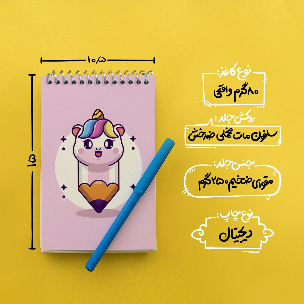 برند خندالو در زمینه تولید انواع دفاتر فانتزی و تحصیلی فعالیت میکند که به دلیل جذابیت ظاهری و طرح های متنوع طرفداران زیادی دارد. دفتر یادداشت خندالو طرح اسب تک شاخ مدادی محصولی مناسب برای همه عاشقان لوازم التحریر است و همچنین همه کسانی که بنا به موقعیت تحصیل یا شغلشان با دفتر و نوشت افزار زیاد سر و کار دارند. در تولید دفتر یادداشت خندالو طرح اسب تک شاخ مدادی از نوع صحافی فنر مارپیچ استفاده شده که در این نوع صحافی برگهها به راحتی چرخیده و یا بیرون آورده می شوند. دفتر های خندالو دارای جلد انعطاف پذیر از جنس مقوای گلاسه 250 گرم با روکش سلفون مات مخملی است که به شما امکان میدهد از دفتر خود بدون اینکه نگرانی از شکستن یا خراب شدن جلد را داشته باشید استفاده کنید و همچنین در این دفاتر از کاغذ 80 گرم با کیفیت استفاده شده که باعث میشود هنگام نوشتن به خوبی جوهر قلم بر روی صفحه نشسته و از خط خوردگیها جلوگیری کند. دفتر یادداشت خندالو با جنس و دوام مناسب، برگه های کاملاً سفید و خطوط طوسی دقیق را داراست که انسان را به نوشتن منظم و زیبا ترغیب میکند. طراحی کاملاً مناسب این دفاتر، به همراه کیفیت بالا، از آن یک محصول مورد علاقه و قابل اعتماد برای همه مقاطع تحصیلی میسازد. دفتر یادداشت خندالو طرح اسب تک شاخ مدادی انتخابی هوشمندانه و مناسب برای افرادی است که به دنبال دفتری با کیفیت و کاربرد عالی هستند. این دفتر، همراه خوبی برای شما در تمام مراحل تحصیل و کار خواهد بود و تجربهای لذتبخش از نوشتن و آموختن را به شما هدیه میدهد.