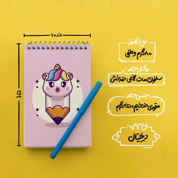 برند خندالو در زمینه تولید انواع دفاتر فانتزی و تحصیلی فعالیت میکند که به دلیل جذابیت ظاهری و طرح های متنوع طرفداران زیادی دارد. دفتر یادداشت خندالو طرح اسب تک شاخ مدادی محصولی مناسب برای همه عاشقان لوازم التحریر است و همچنین همه کسانی که بنا به موقعیت تحصیل یا شغلشان با دفتر و نوشت افزار زیاد سر و کار دارند. در تولید دفتر یادداشت خندالو طرح اسب تک شاخ مدادی از نوع صحافی فنر مارپیچ استفاده شده که در این نوع صحافی برگهها به راحتی چرخیده و یا بیرون آورده می شوند. دفتر های خندالو دارای جلد انعطاف پذیر از جنس مقوای گلاسه 250 گرم با روکش سلفون مات مخملی است که به شما امکان میدهد از دفتر خود بدون اینکه نگرانی از شکستن یا خراب شدن جلد را داشته باشید استفاده کنید و همچنین در این دفاتر از کاغذ 80 گرم با کیفیت استفاده شده که باعث میشود هنگام نوشتن به خوبی جوهر قلم بر روی صفحه نشسته و از خط خوردگیها جلوگیری کند. دفتر یادداشت خندالو با جنس و دوام مناسب، برگه های کاملاً سفید و خطوط طوسی دقیق را داراست که انسان را به نوشتن منظم و زیبا ترغیب میکند. طراحی کاملاً مناسب این دفاتر، به همراه کیفیت بالا، از آن یک محصول مورد علاقه و قابل اعتماد برای همه مقاطع تحصیلی میسازد. دفتر یادداشت خندالو طرح اسب تک شاخ مدادی انتخابی هوشمندانه و مناسب برای افرادی است که به دنبال دفتری با کیفیت و کاربرد عالی هستند. این دفتر، همراه خوبی برای شما در تمام مراحل تحصیل و کار خواهد بود و تجربهای لذتبخش از نوشتن و آموختن را به شما هدیه میدهد.