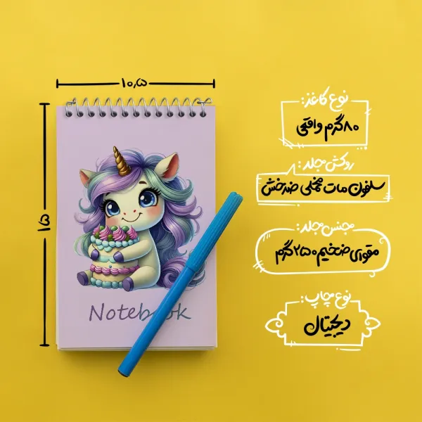 برند خندالو در زمینه تولید انواع دفاتر فانتزی و تحصیلی فعالیت میکند که به دلیل جذابیت ظاهری و طرح های متنوع طرفداران زیادی دارد. دفتر یادداشت خندالو طرح اسب تک شاخ کیوت محصولی مناسب برای همه عاشقان لوازم التحریر است و همچنین همه کسانی که بنا به موقعیت تحصیل یا شغلشان با دفتر و نوشت افزار زیاد سر و کار دارند. در تولید دفتر یادداشت خندالو طرح اسب تک شاخ کیوت از نوع صحافی فنر مارپیچ استفاده شده که در این نوع صحافی برگهها به راحتی چرخیده و یا بیرون آورده می شوند. دفتر های خندالو دارای جلد انعطاف پذیر از جنس مقوای گلاسه 250 گرم با روکش سلفون مات مخملی است که به شما امکان میدهد از دفتر خود بدون اینکه نگرانی از شکستن یا خراب شدن جلد را داشته باشید استفاده کنید و همچنین در این دفاتر از کاغذ 80 گرم با کیفیت استفاده شده که باعث میشود هنگام نوشتن به خوبی جوهر قلم بر روی صفحه نشسته و از خط خوردگیها جلوگیری کند. دفتر یادداشت خندالو با جنس و دوام مناسب، برگه های کاملاً سفید و خطوط طوسی دقیق را داراست که انسان را به نوشتن منظم و زیبا ترغیب میکند. طراحی کاملاً مناسب این دفاتر، به همراه کیفیت بالا، از آن یک محصول مورد علاقه و قابل اعتماد برای همه مقاطع تحصیلی میسازد. دفتر یادداشت خندالو طرح اسب تک شاخ کیوت انتخابی هوشمندانه و مناسب برای افرادی است که به دنبال دفتری با کیفیت و کاربرد عالی هستند. این دفتر، همراه خوبی برای شما در تمام مراحل تحصیل و کار خواهد بود و تجربهای لذتبخش از نوشتن و آموختن را به شما هدیه میدهد.