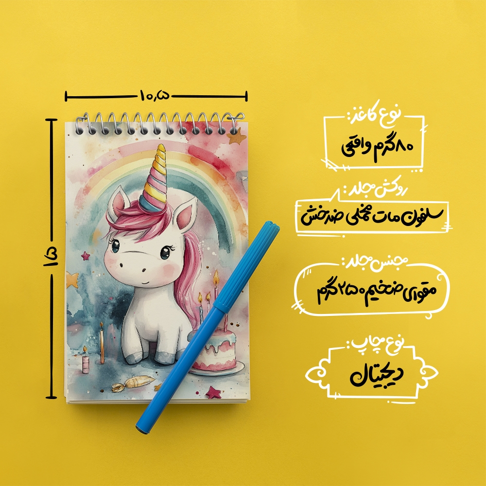 برند خندالو در زمینه تولید انواع دفاتر فانتزی و تحصیلی فعالیت میکند که به دلیل جذابیت ظاهری و طرح های متنوع طرفداران زیادی دارد. دفتر یادداشت خندالو طرح اسب تک شاخ محصولی مناسب برای همه عاشقان لوازم التحریر است و همچنین همه کسانی که بنا به موقعیت تحصیل یا شغلشان با دفتر و نوشت افزار زیاد سر و کار دارند. در تولید دفتر یادداشت خندالو طرح اسب تک شاخ از نوع صحافی فنر مارپیچ استفاده شده که در این نوع صحافی برگهها به راحتی چرخیده و یا بیرون آورده می شوند. دفتر های خندالو دارای جلد انعطاف پذیر از جنس مقوای گلاسه 250 گرم با روکش سلفون مات مخملی است که به شما امکان میدهد از دفتر خود بدون اینکه نگرانی از شکستن یا خراب شدن جلد را داشته باشید استفاده کنید و همچنین در این دفاتر از کاغذ 80 گرم با کیفیت استفاده شده که باعث میشود هنگام نوشتن به خوبی جوهر قلم بر روی صفحه نشسته و از خط خوردگیها جلوگیری کند. دفتر یادداشت خندالو با جنس و دوام مناسب، برگه های کاملاً سفید و خطوط طوسی دقیق را داراست که انسان را به نوشتن منظم و زیبا ترغیب میکند. طراحی کاملاً مناسب این دفاتر، به همراه کیفیت بالا، از آن یک محصول مورد علاقه و قابل اعتماد برای همه مقاطع تحصیلی میسازد. دفتر یادداشت خندالو طرح اسب تک شاخ انتخابی هوشمندانه و مناسب برای افرادی است که به دنبال دفتری با کیفیت و کاربرد عالی هستند. این دفتر، همراه خوبی برای شما در تمام مراحل تحصیل و کار خواهد بود و تجربهای لذتبخش از نوشتن و آموختن را به شما هدیه میدهد.