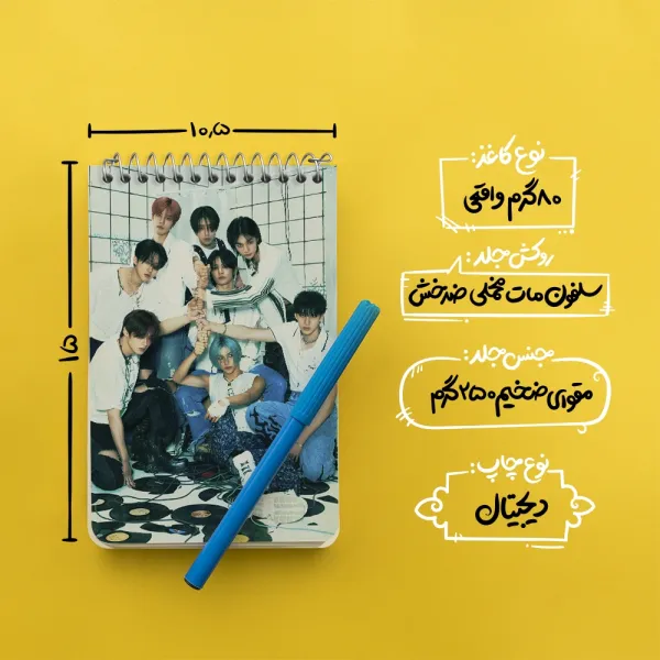 برند خندالو در زمینه تولید انواع دفاتر فانتزی و تحصیلی فعالیت میکند که به دلیل جذابیت ظاهری و طرح های متنوع طرفداران زیادی دارد. دفتر یادداشت خندالو طرح استری کیدز (Stray Kids) محصولی مناسب برای همه عاشقان لوازم التحریر است و همچنین همه کسانی که بنا به موقعیت تحصیل یا شغلشان با دفتر و نوشت افزار زیاد سر و کار دارند. در تولید دفتر یادداشت خندالو طرح استری کیدز (Stray Kids) از نوع صحافی فنر مارپیچ استفاده شده که در این نوع صحافی برگه‌ها به راحتی چرخیده و یا بیرون آورده می شوند.
