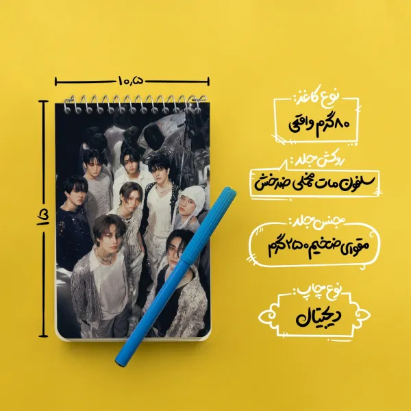 برند خندالو در زمینه تولید انواع دفاتر فانتزی و تحصیلی فعالیت میکند که به دلیل جذابیت ظاهری و طرح های متنوع طرفداران زیادی دارد. دفتر یادداشت خندالو طرح استری کیدز (Stray Kids) محصولی مناسب برای همه عاشقان لوازم التحریر است و همچنین همه کسانی که بنا به موقعیت تحصیل یا شغلشان با دفتر و نوشت افزار زیاد سر و کار دارند. در تولید دفتر یادداشت خندالو طرح استری کیدز (Stray Kids) از نوع صحافی فنر مارپیچ استفاده شده که در این نوع صحافی برگه‌ها به راحتی چرخیده و یا بیرون آورده می شوند.