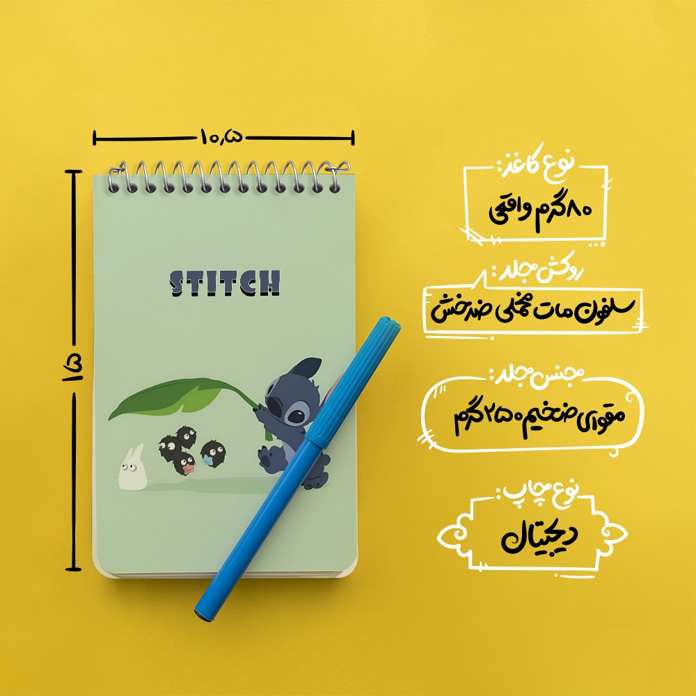 برند خندالو در زمینه تولید انواع دفاتر فانتزی و تحصیلی فعالیت میکند که به دلیل جذابیت ظاهری و طرح های متنوع طرفداران زیادی دارد. دفتر یادداشت خندالو طرح استیچ محصولی مناسب برای همه عاشقان لوازم التحریر است و همچنین همه کسانی که بنا به موقعیت تحصیل یا شغلشان با دفتر و نوشت افزار زیاد سر و کار دارند. در تولید دفتر یادداشت خندالو طرح استیچ از نوع صحافی فنر مارپیچ استفاده شده که در این نوع صحافی برگه‌ها به راحتی چرخیده و یا بیرون آورده می شوند.