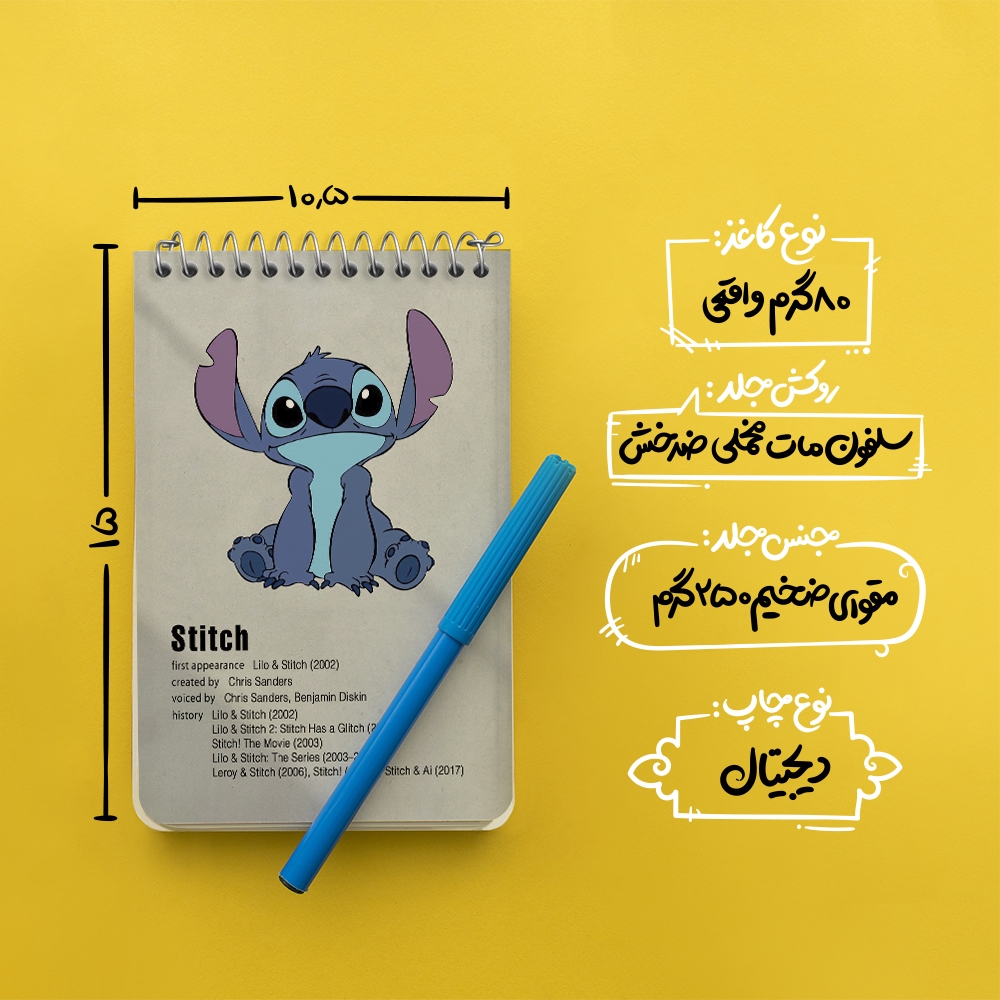 برند خندالو در زمینه تولید انواع دفاتر فانتزی و تحصیلی فعالیت میکند که به دلیل جذابیت ظاهری و طرح های متنوع طرفداران زیادی دارد. دفتر یادداشت خندالو طرح استیچ محصولی مناسب برای همه عاشقان لوازم التحریر است و همچنین همه کسانی که بنا به موقعیت تحصیل یا شغلشان با دفتر و نوشت افزار زیاد سر و کار دارند. در تولید دفتر یادداشت خندالو طرح استیچ از نوع صحافی فنر مارپیچ استفاده شده که در این نوع صحافی برگه‌ها به راحتی چرخیده و یا بیرون آورده می شوند.