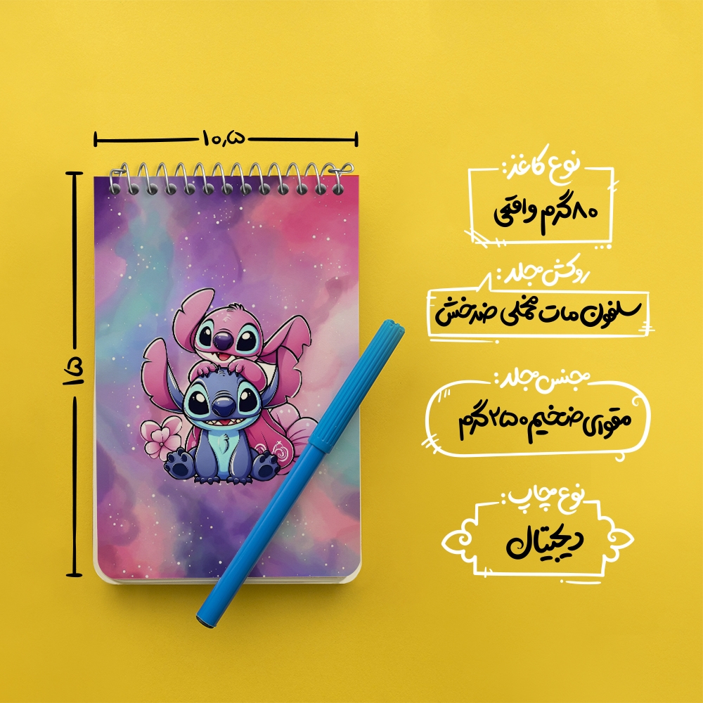 برند خندالو در زمینه تولید انواع دفاتر فانتزی و تحصیلی فعالیت میکند که به دلیل جذابیت ظاهری و طرح های متنوع طرفداران زیادی دارد. دفتر یادداشت خندالو طرح استیچ محصولی مناسب برای همه عاشقان لوازم التحریر است و همچنین همه کسانی که بنا به موقعیت تحصیل یا شغلشان با دفتر و نوشت افزار زیاد سر و کار دارند. در تولید دفتر یادداشت خندالو طرح استیچ از نوع صحافی فنر مارپیچ استفاده شده که در این نوع صحافی برگه‌ها به راحتی چرخیده و یا بیرون آورده می شوند.