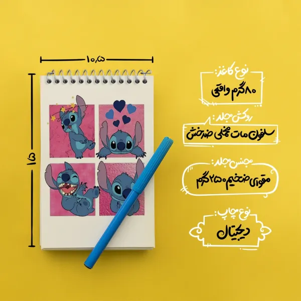 برند خندالو در زمینه تولید انواع دفاتر فانتزی و تحصیلی فعالیت میکند که به دلیل جذابیت ظاهری و طرح های متنوع طرفداران زیادی دارد. دفتر یادداشت خندالو طرح استیچ محصولی مناسب برای همه عاشقان لوازم التحریر است و همچنین همه کسانی که بنا به موقعیت تحصیل یا شغلشان با دفتر و نوشت افزار زیاد سر و کار دارند. در تولید دفتر یادداشت خندالو طرح استیچ از نوع صحافی فنر مارپیچ استفاده شده که در این نوع صحافی برگه‌ها به راحتی چرخیده و یا بیرون آورده می شوند.