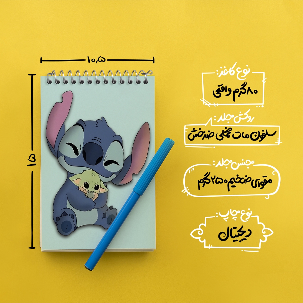 برند خندالو در زمینه تولید انواع دفاتر فانتزی و تحصیلی فعالیت میکند که به دلیل جذابیت ظاهری و طرح های متنوع طرفداران زیادی دارد. دفتر یادداشت خندالو طرح استیچ محصولی مناسب برای همه عاشقان لوازم التحریر است و همچنین همه کسانی که بنا به موقعیت تحصیل یا شغلشان با دفتر و نوشت افزار زیاد سر و کار دارند. در تولید دفتر یادداشت خندالو طرح استیچ از نوع صحافی فنر مارپیچ استفاده شده که در این نوع صحافی برگه‌ها به راحتی چرخیده و یا بیرون آورده می شوند.