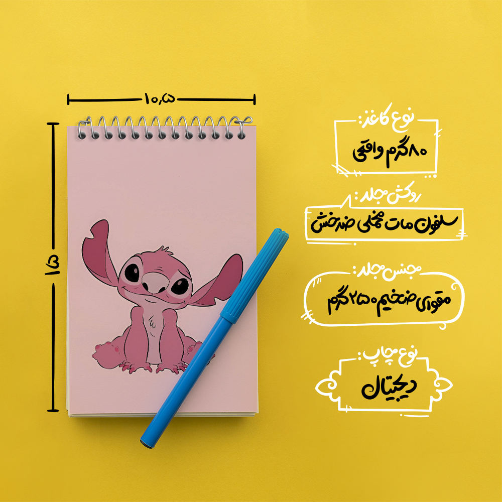 برند خندالو در زمینه تولید انواع دفاتر فانتزی و تحصیلی فعالیت میکند که به دلیل جذابیت ظاهری و طرح های متنوع طرفداران زیادی دارد. دفتر یادداشت خندالو طرح استیچ (Stitch) محصولی مناسب برای همه عاشقان لوازم التحریر است و همچنین همه کسانی که بنا به موقعیت تحصیل یا شغلشان با دفتر و نوشت افزار زیاد سر و کار دارند. در تولید دفتر یادداشت خندالو طرح استیچ (Stitch) از نوع صحافی فنر مارپیچ استفاده شده که در این نوع صحافی برگه‌ها به راحتی چرخیده و یا بیرون آورده می شوند.